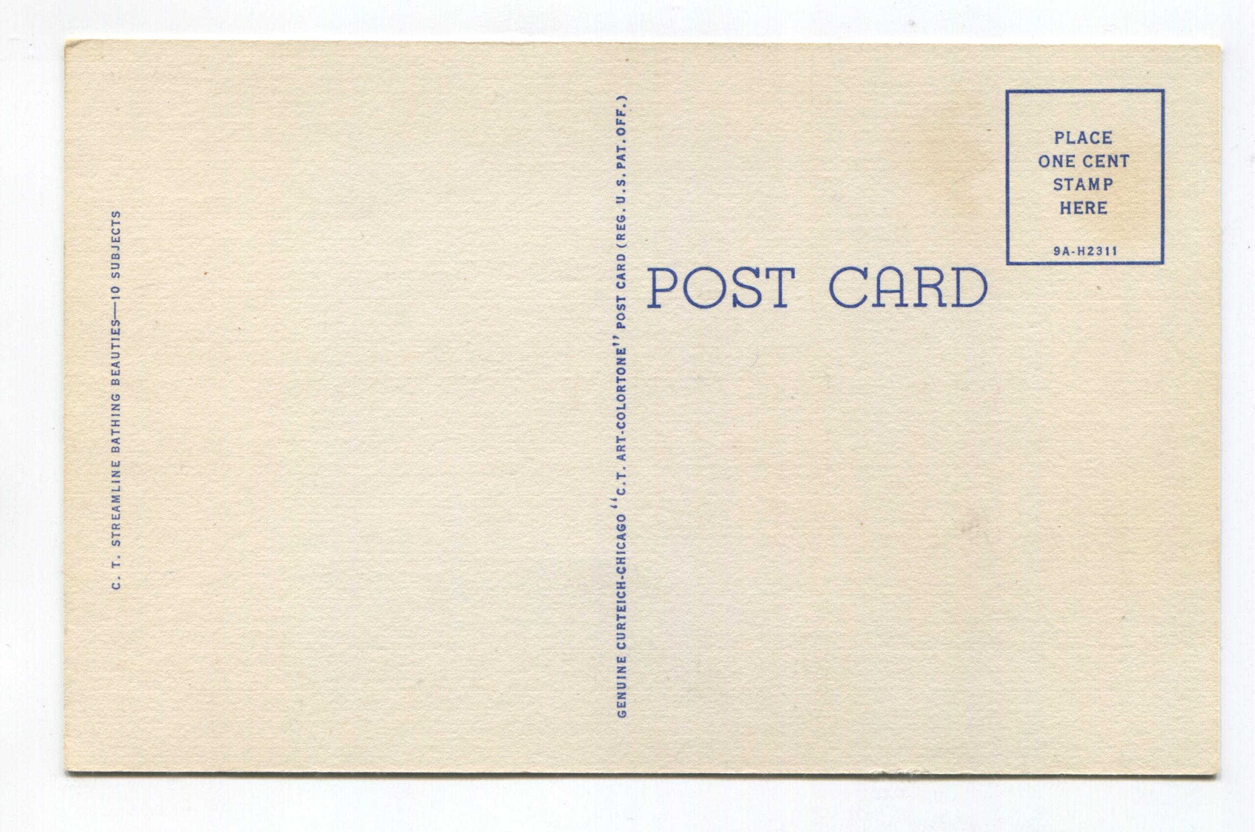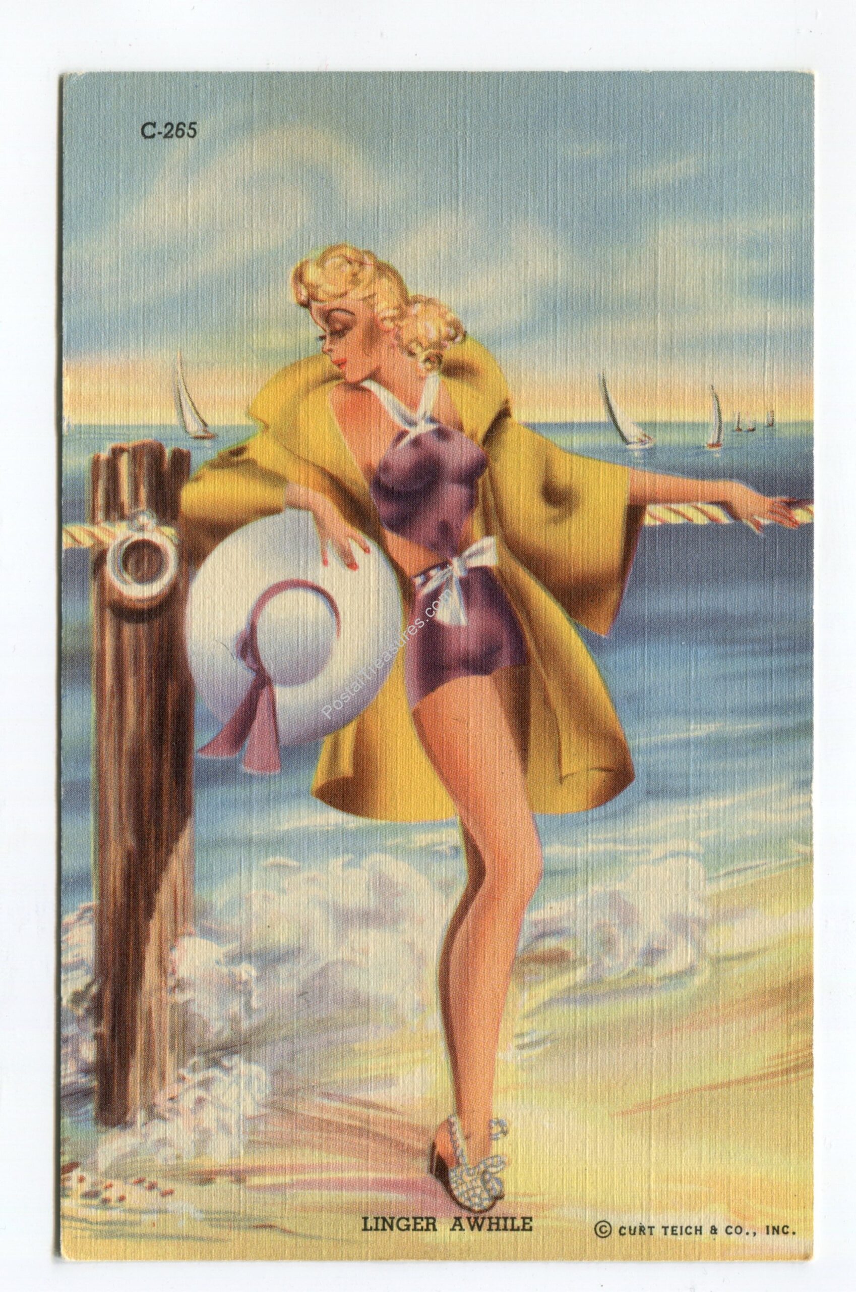 Linger Awhile – Girl standing on Beach in Swimsuit with hat postcard