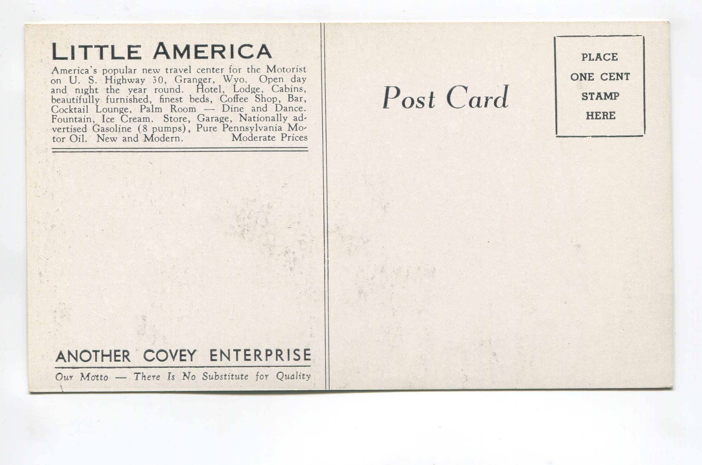 Little America Service Station on US Highway 30 Granger Wyoming postcard