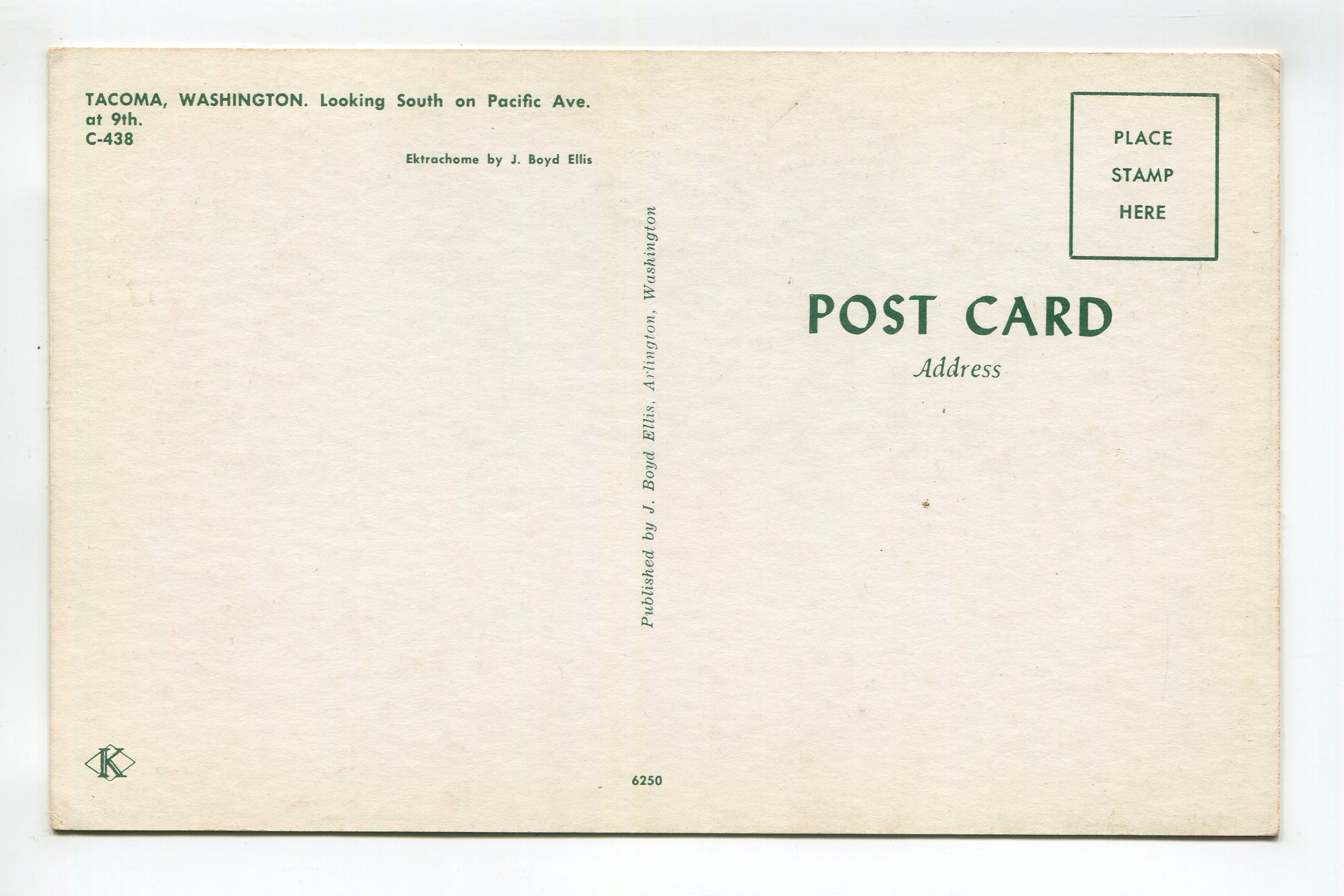 Looking South on Pacific Avenue at 9th Tacoma Washington postcard