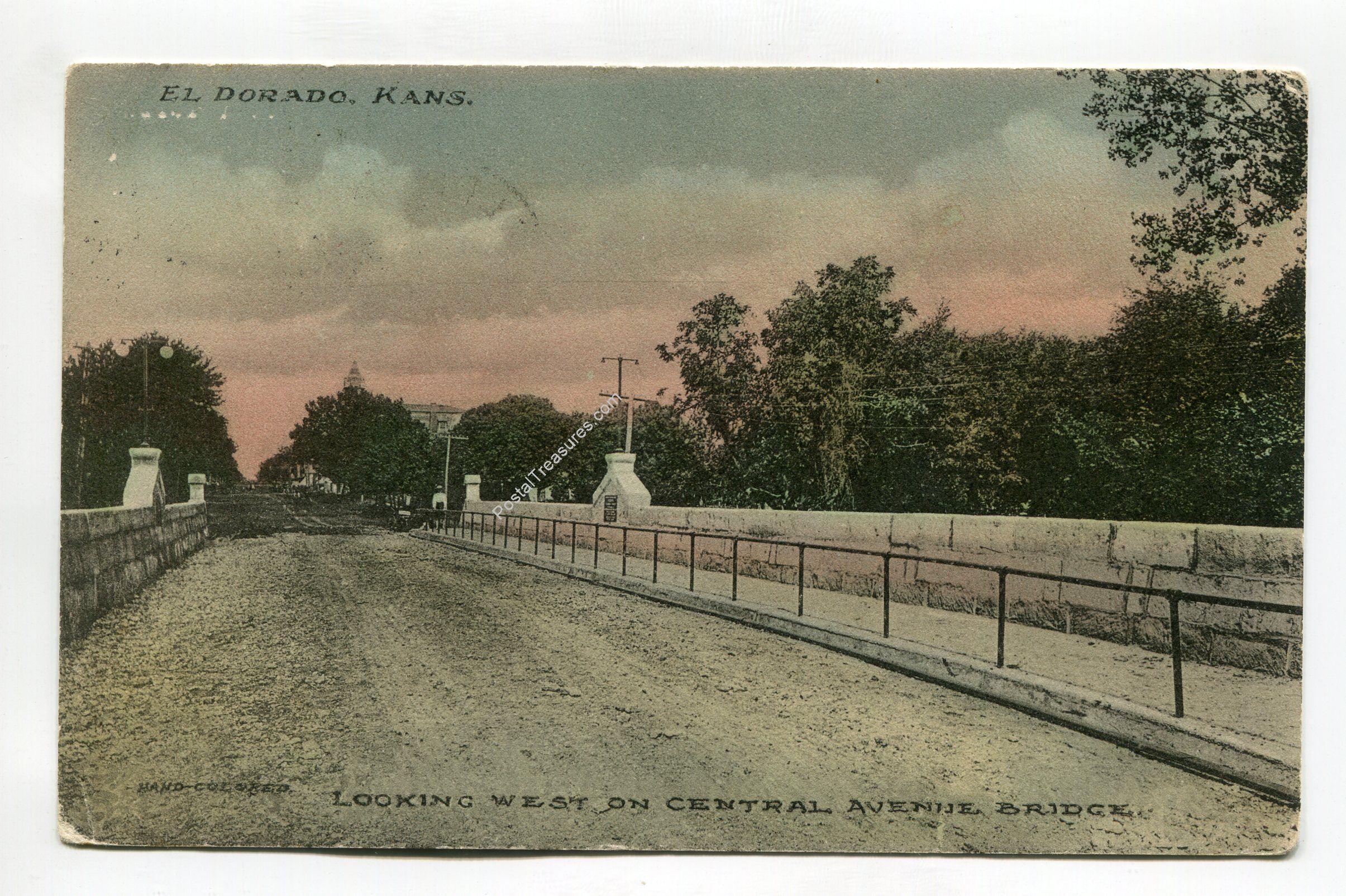 Looking west on Central Avenue Bridge El Dorado Kansas postcard