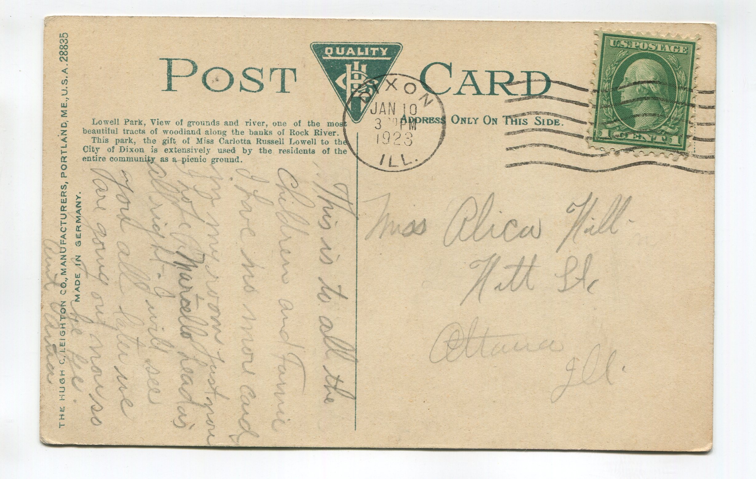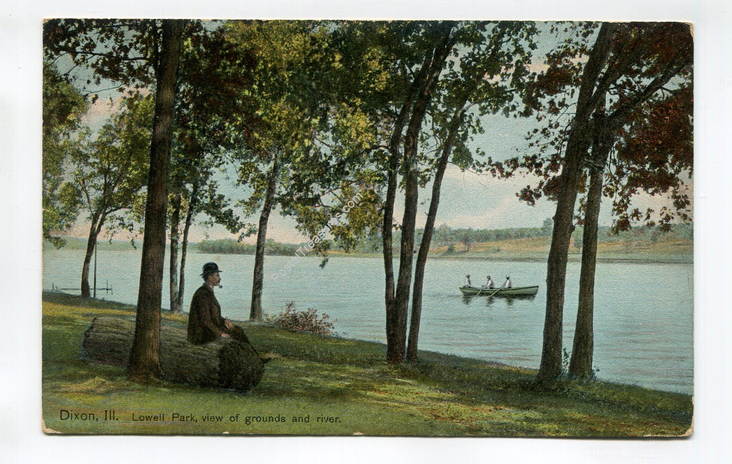 Lowell Park view of grounds and river Dixon Illinois postcard