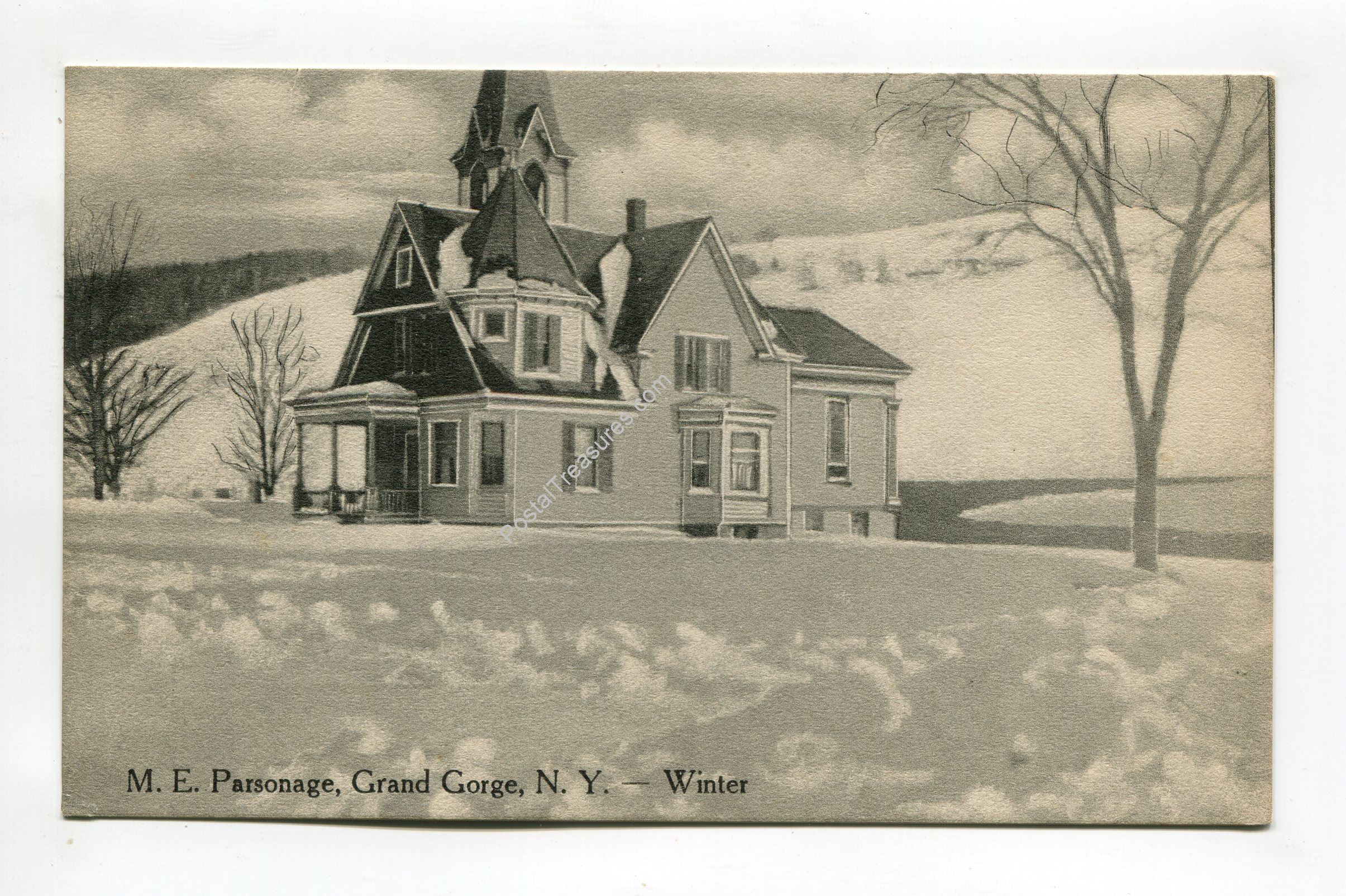 M E Parsonage Grand Gorge New York winter postcard