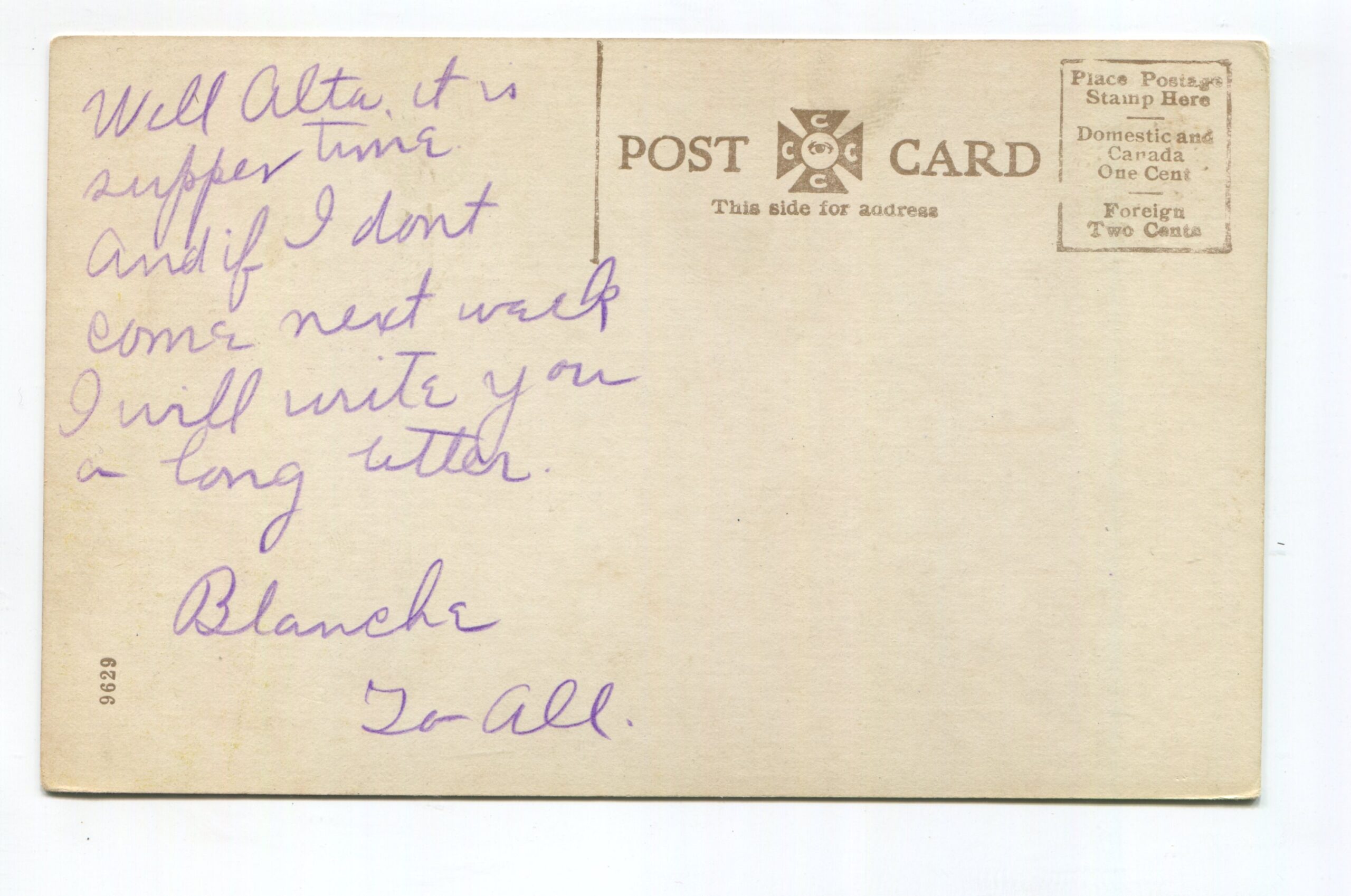 Condition – noticeable corner/edge wear, crease in corners and in lower left quarter, rear message impression visible on card front, writing on card rear, marks on card front, soiling/marks