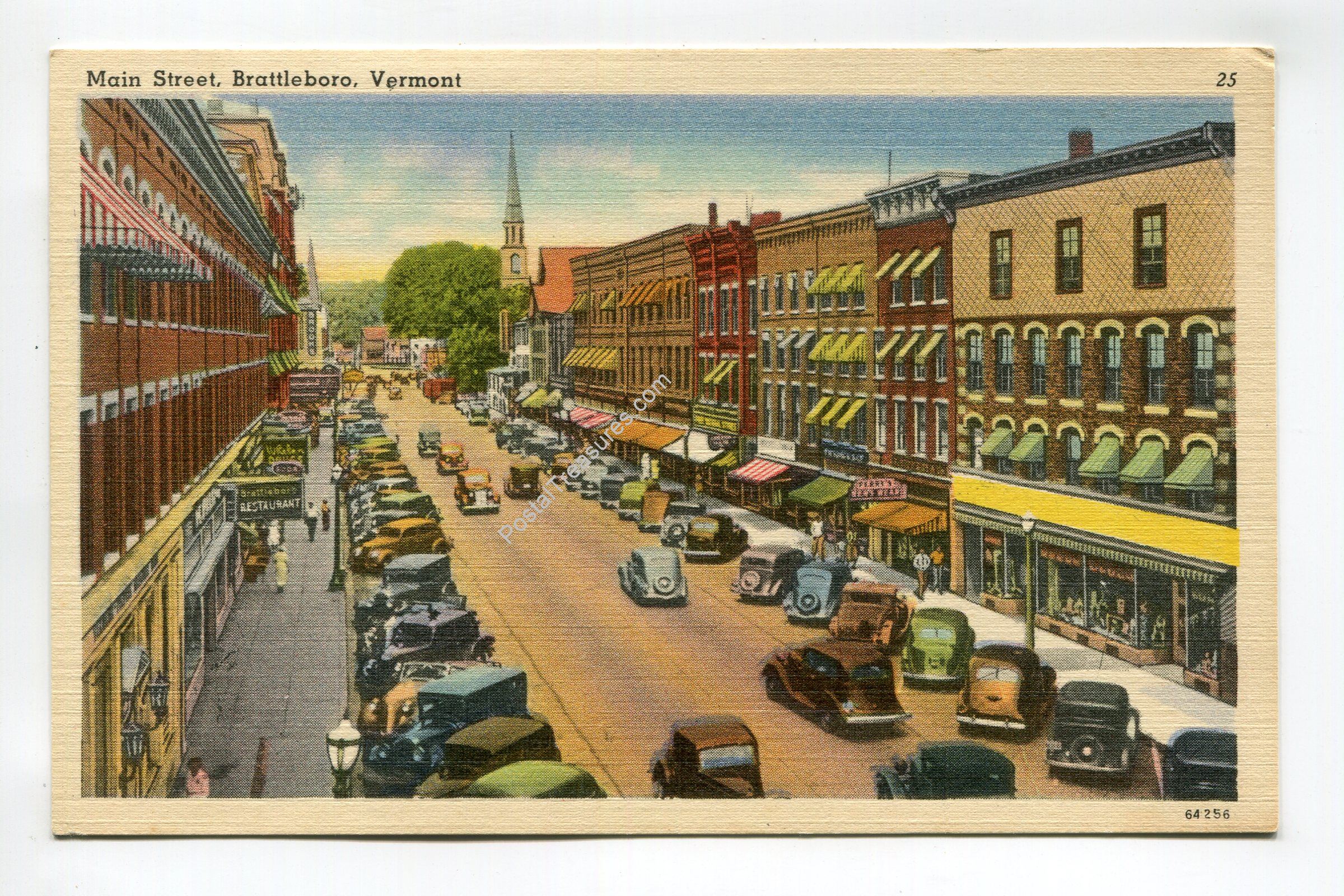Main Street Brattleboro Vermont postcard