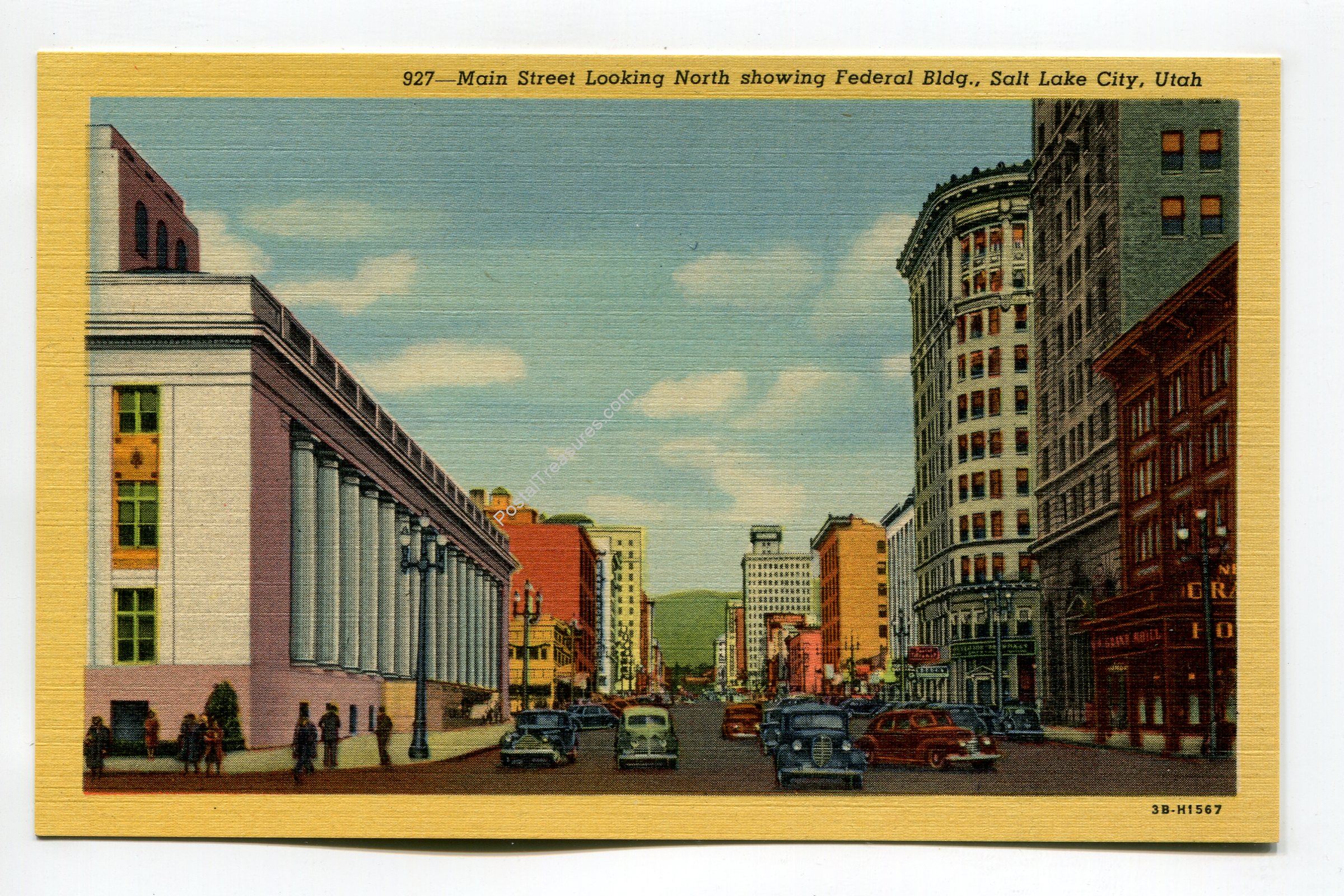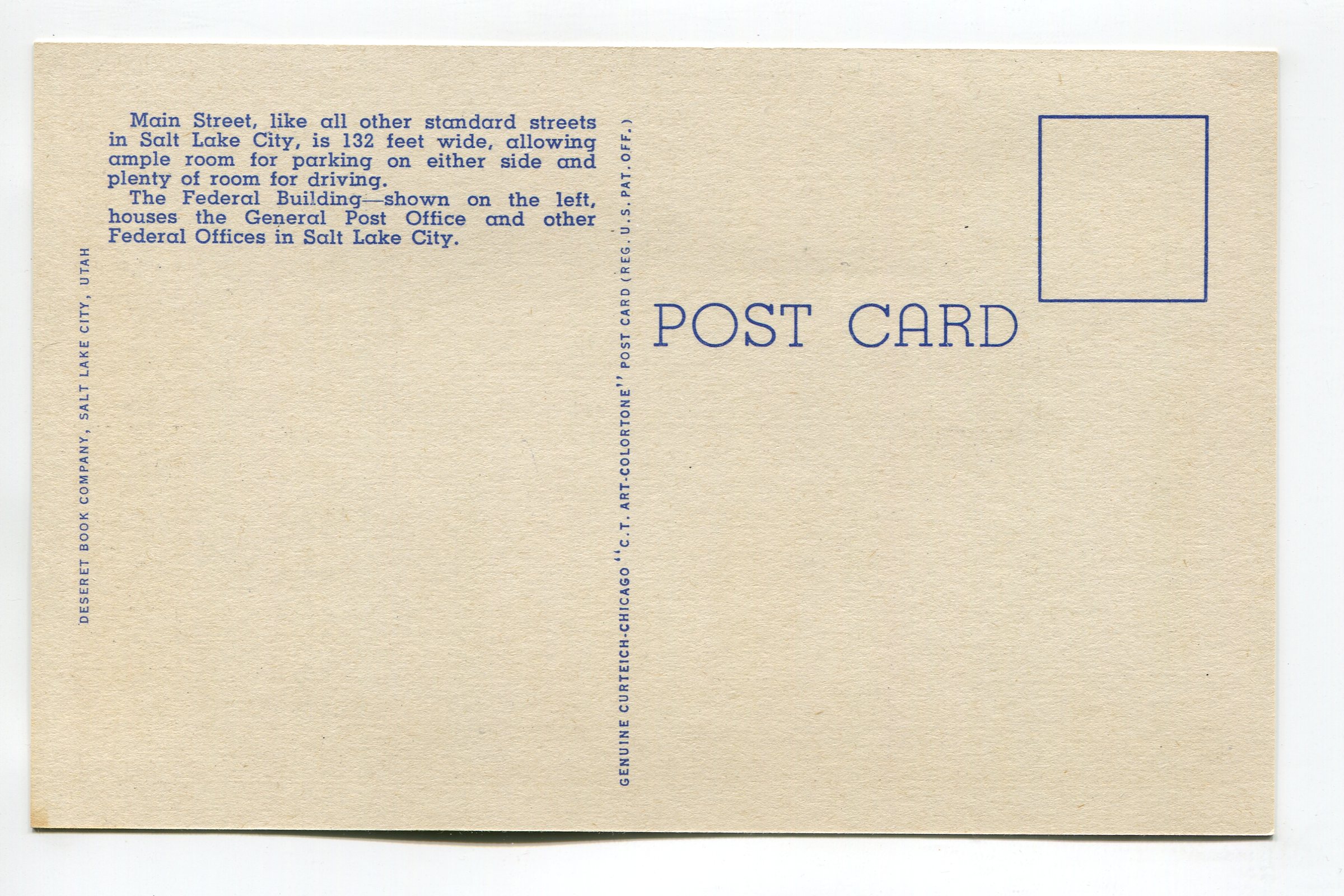 Main Street Looking North showing Federal Building Salt Lake City Utah postcard