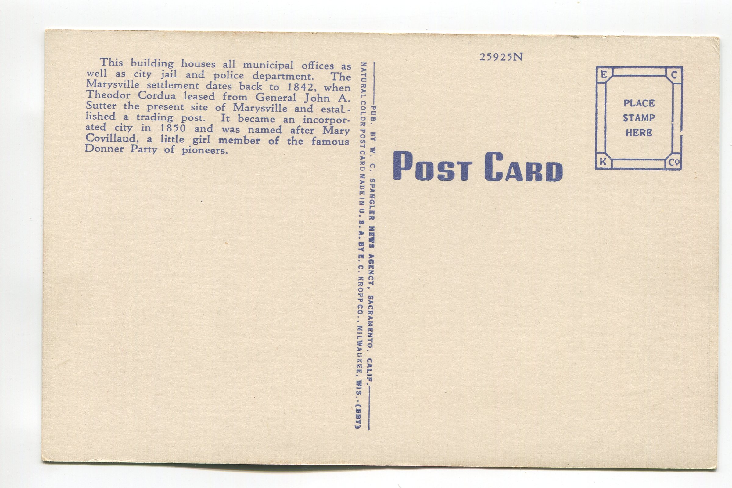 Marysville City Hall Marysville California postcard