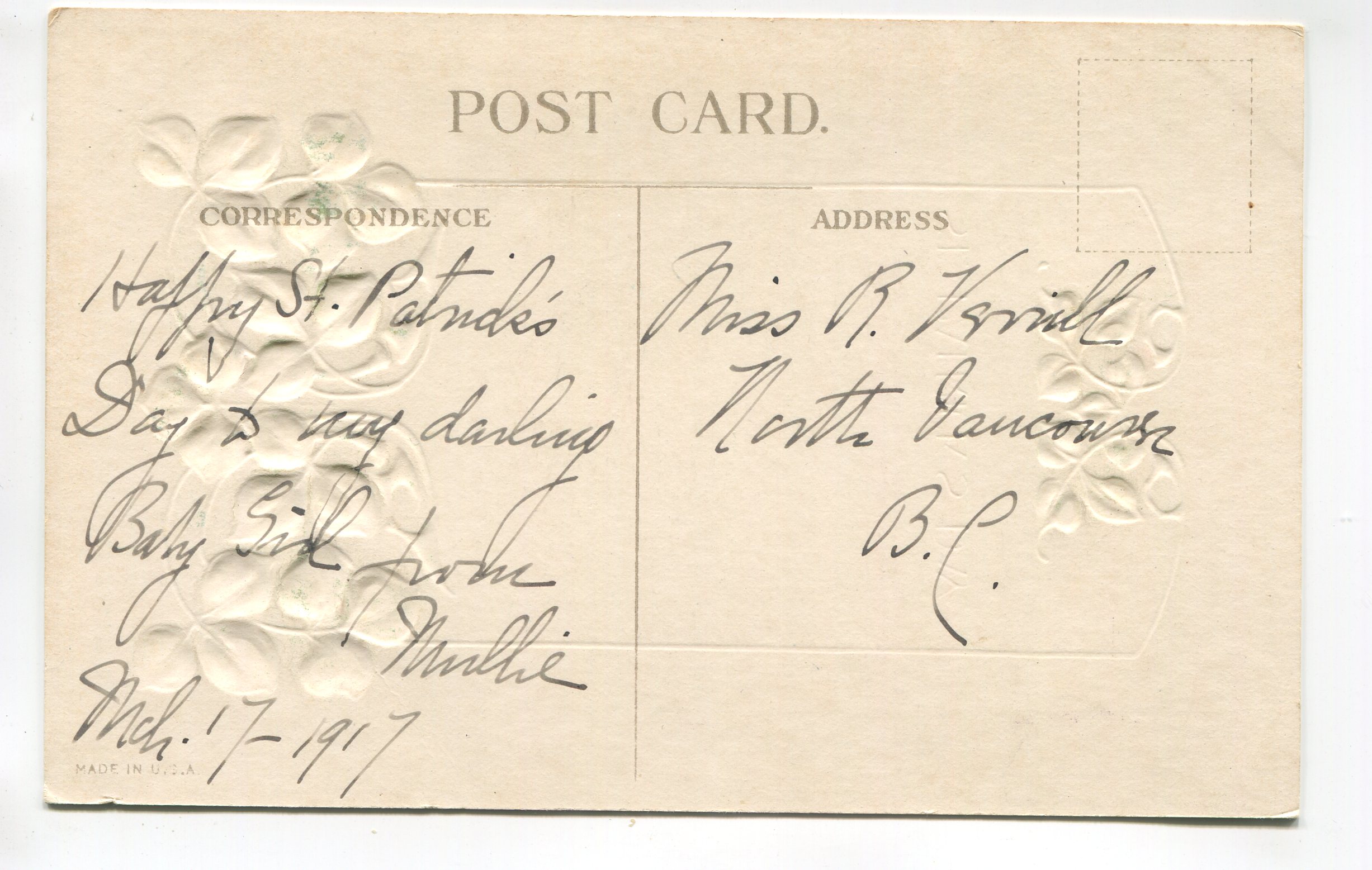 May your heart be as gay as the green of the good old Irish shamrock on St Patricks Day postcard