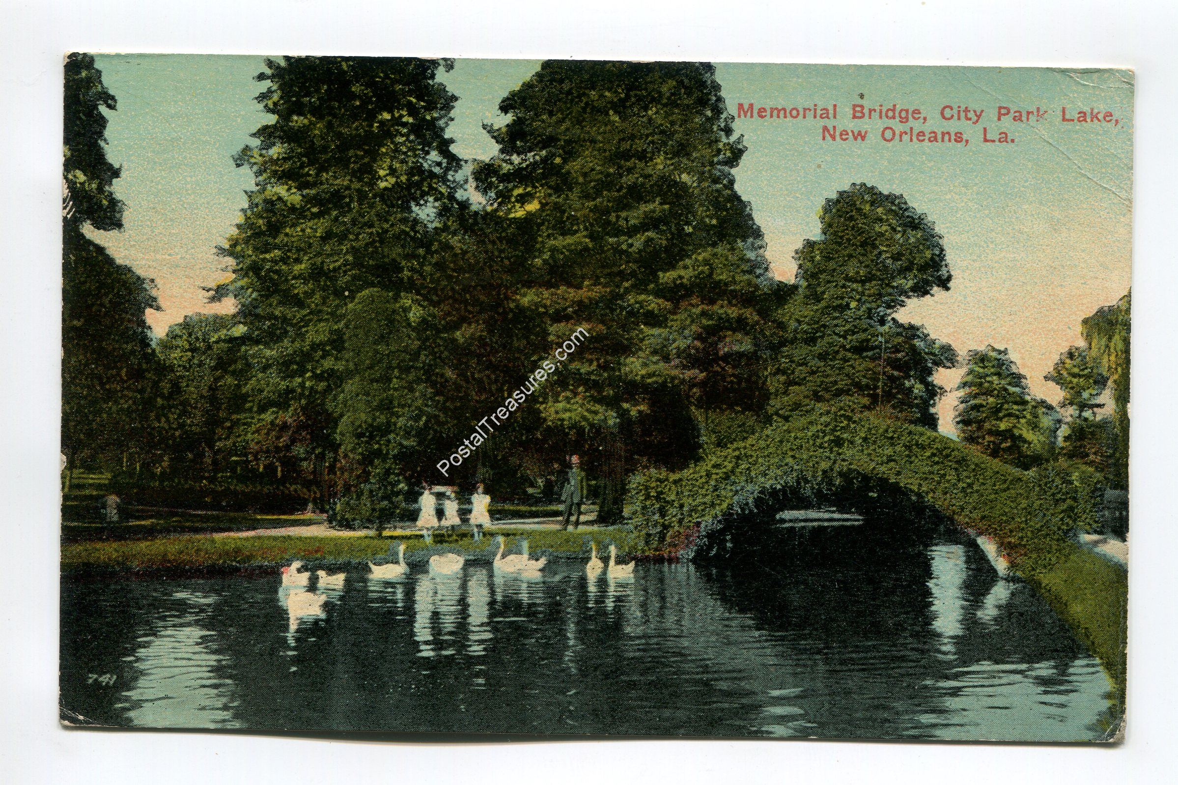 Memorial Bridge City Park Lake New Orleans Louisiana postcard