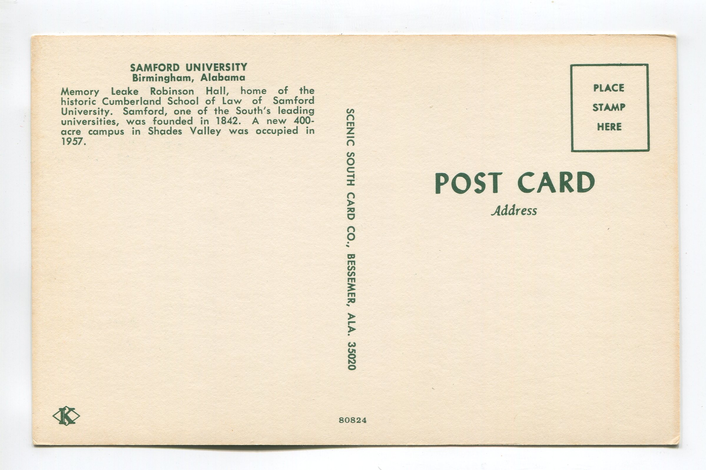 Memory Leake Robinson Hall Samford University Birmingham Alabama postcard