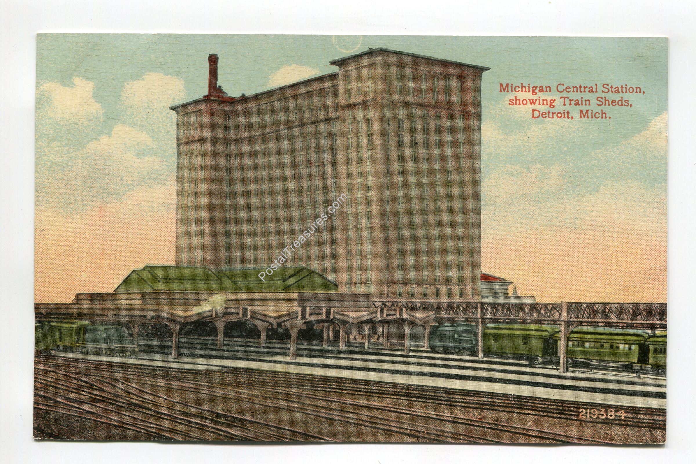 Michigan Central Station showing Train Sheds Detroit Michigan postcard