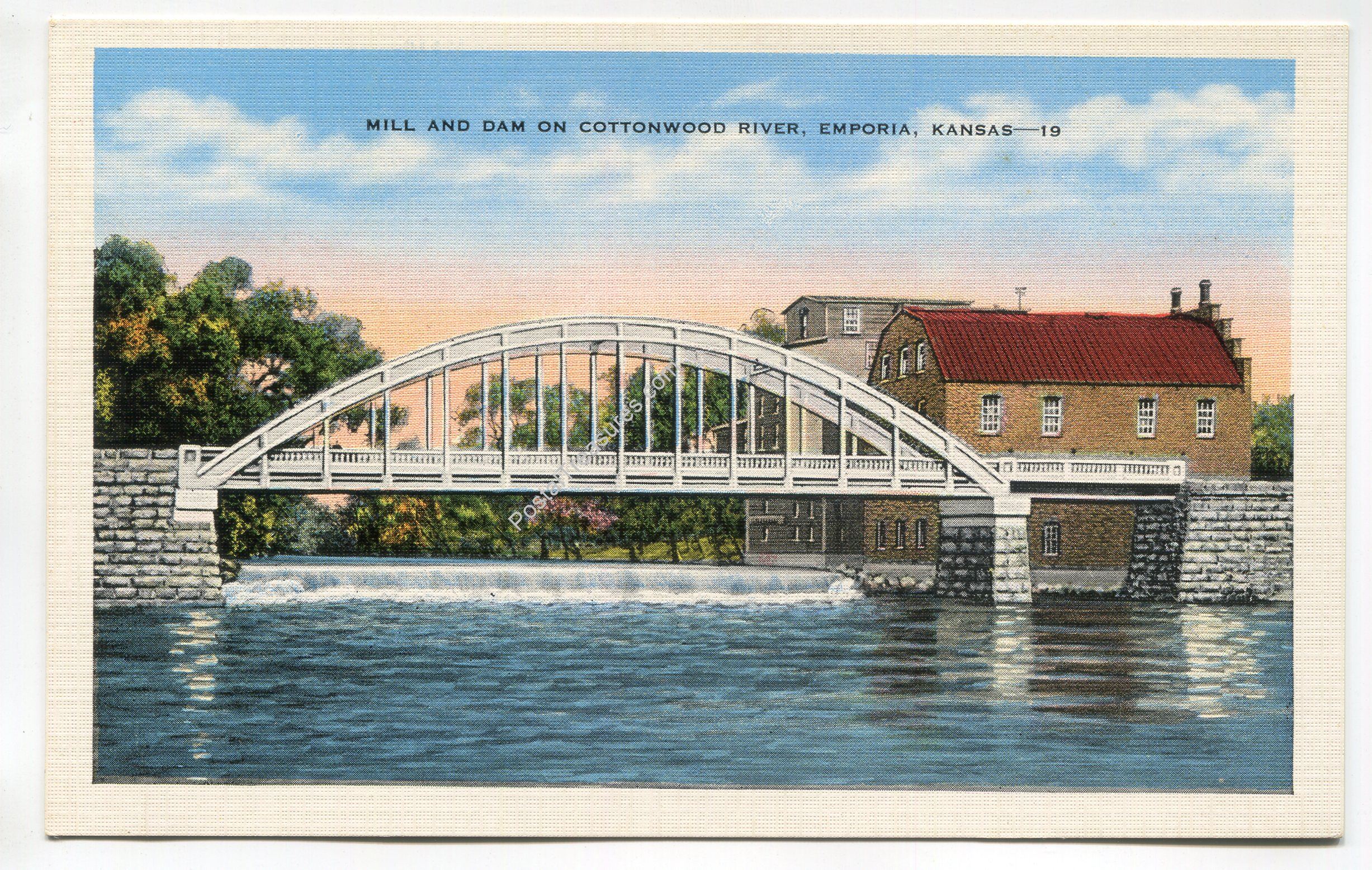 Mill and Dam on Cottonwood River Emporia Kansas postcard