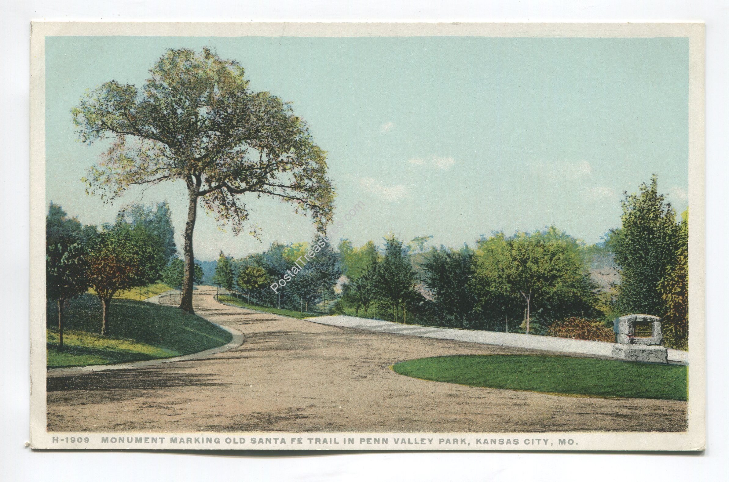 Monument marking Old Sante Fe Trail in Penn Valley Park Kansas City Missouri postcard