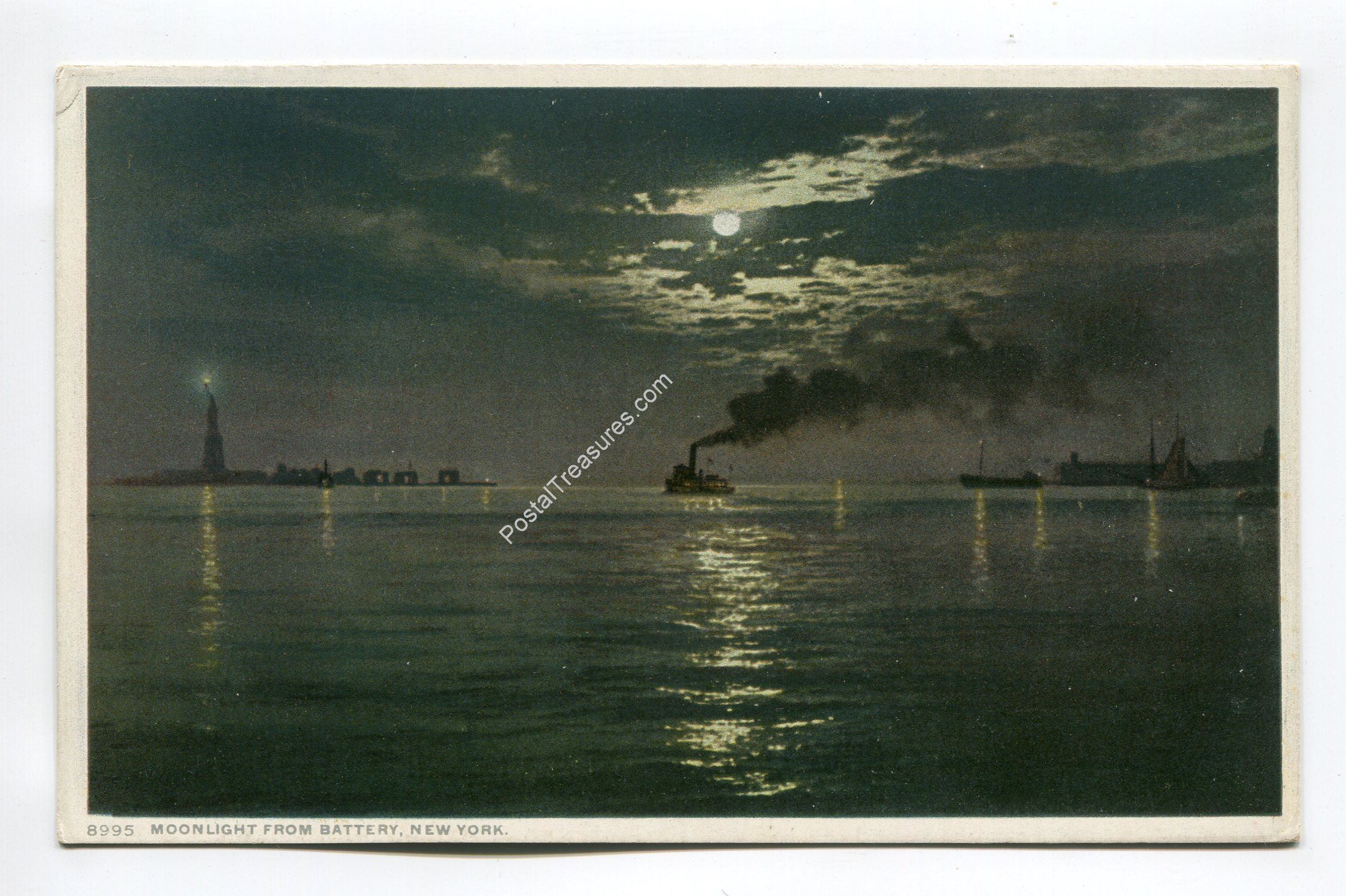 Moonlight from Battery New York postcard