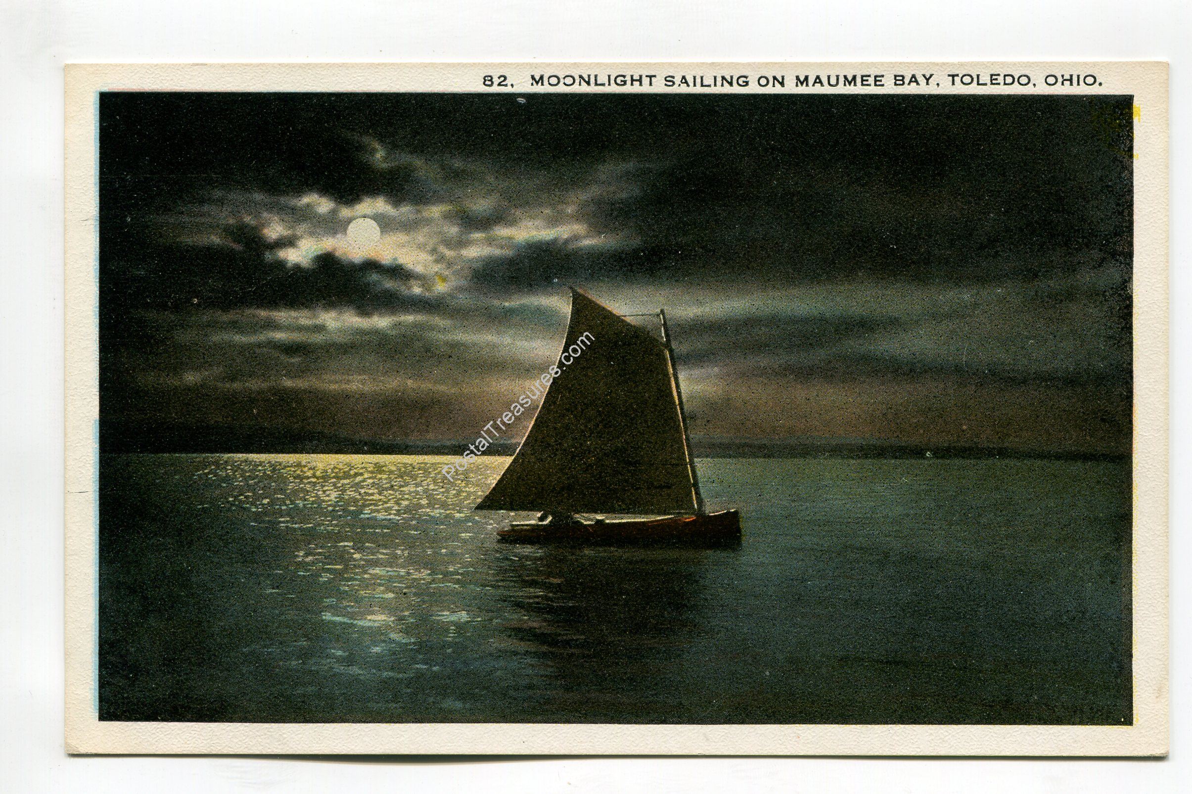 Moonlight Sailing on Maumee Bay Toledo Ohio postcard