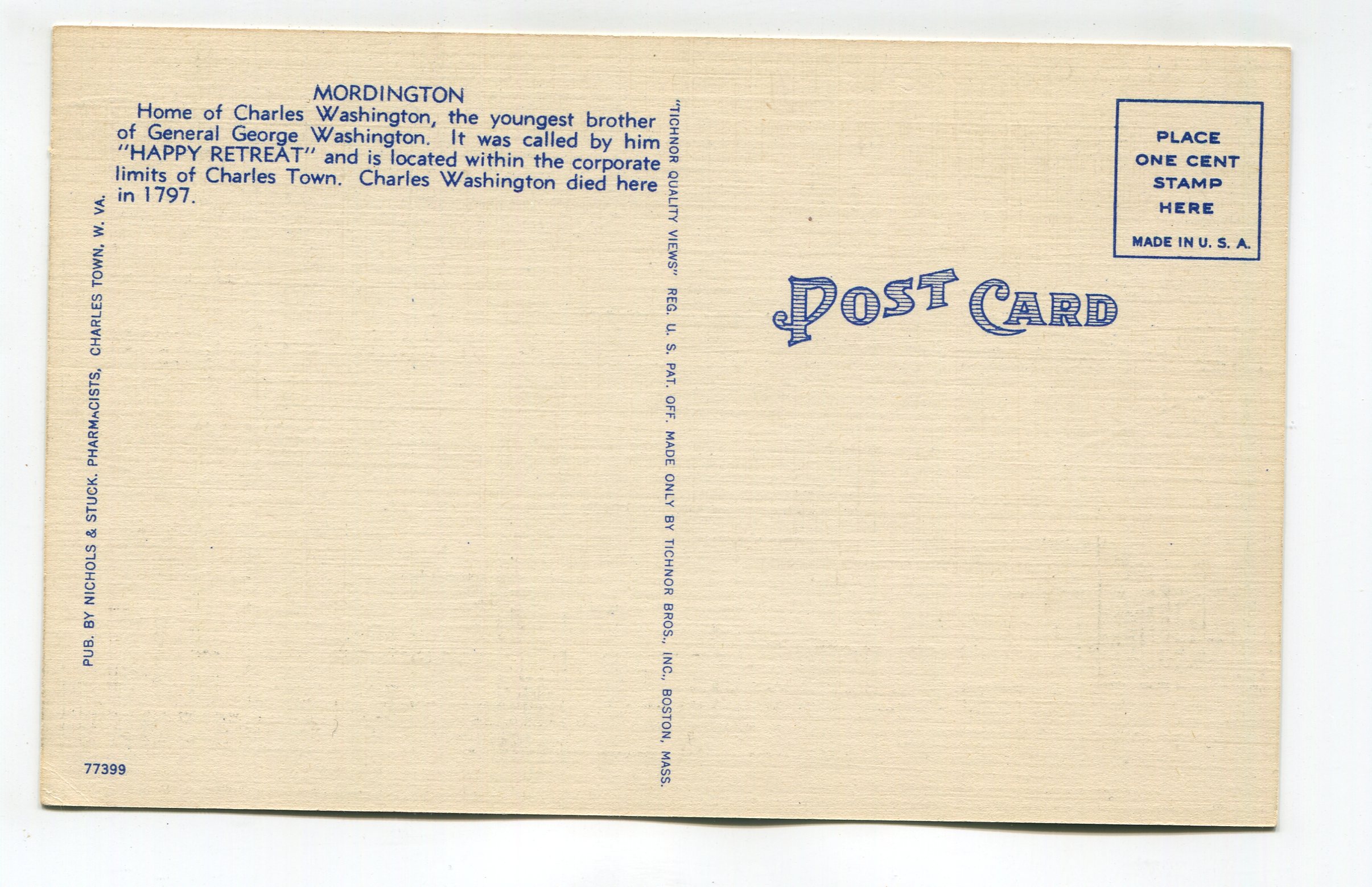 Mordington Charles Town West Virginia postcard