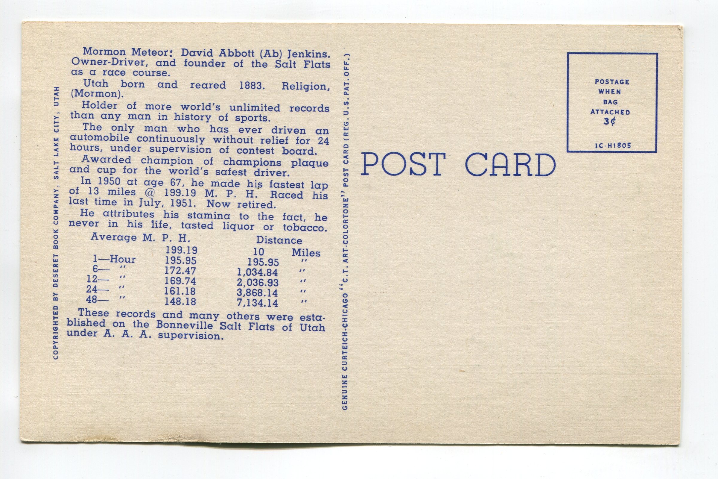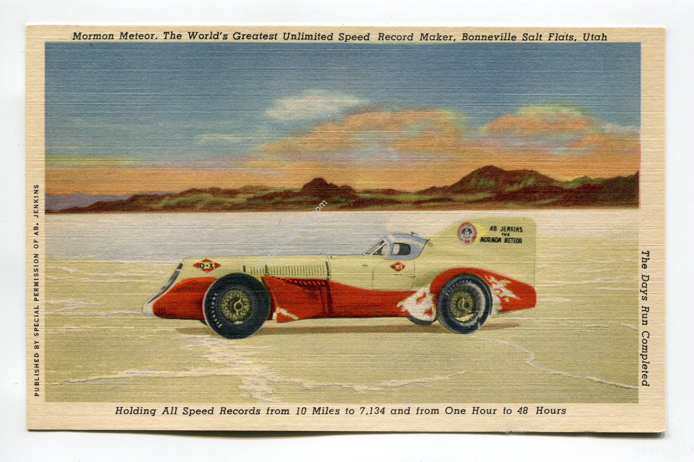 Mormon Meteor Worlds Greatest Unlimited Speed Record Maker, Bonneville Salt Flats Utah postcard