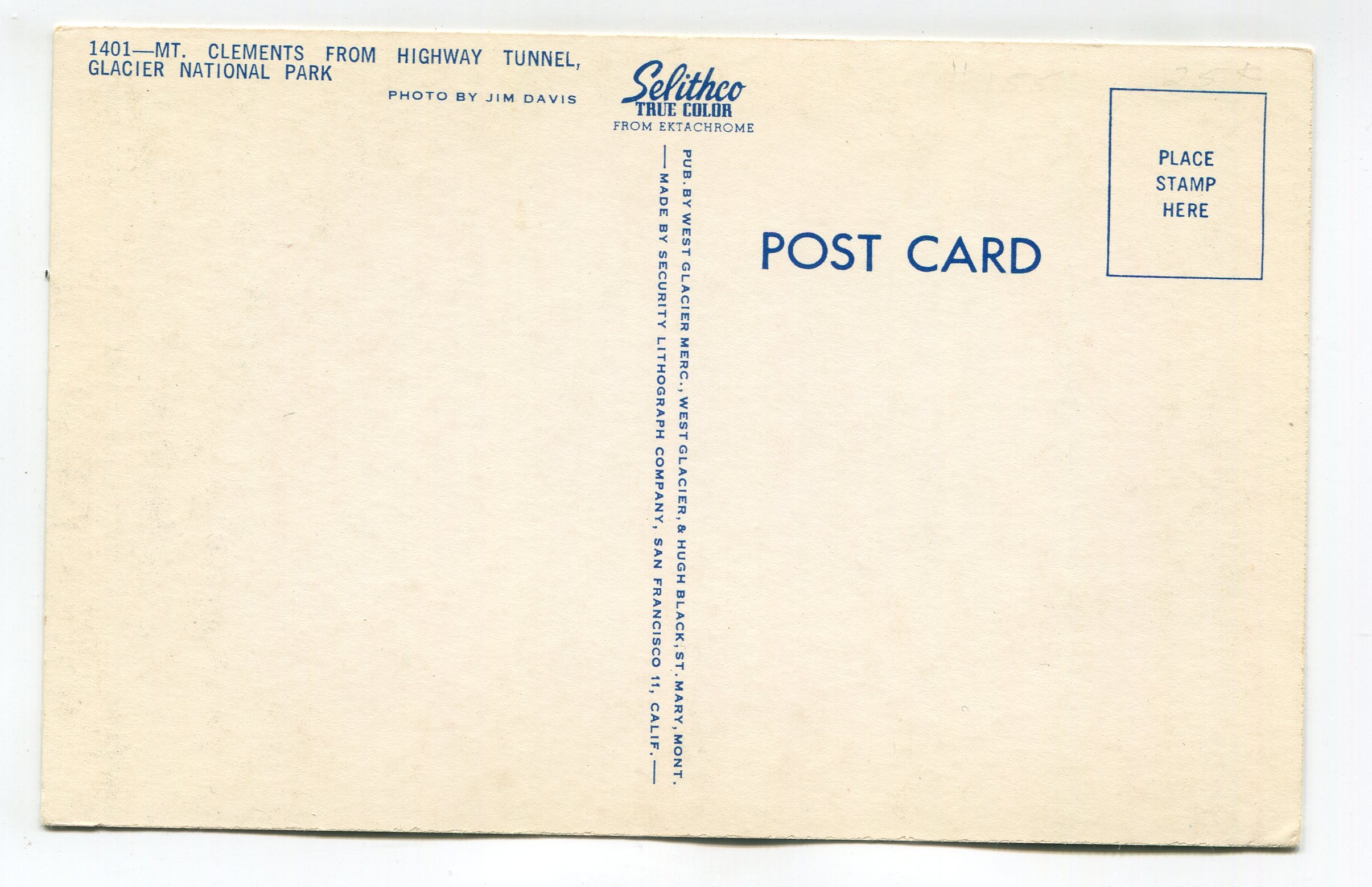 Mt Clements from Highway Tunnel Glacier National Park postcard