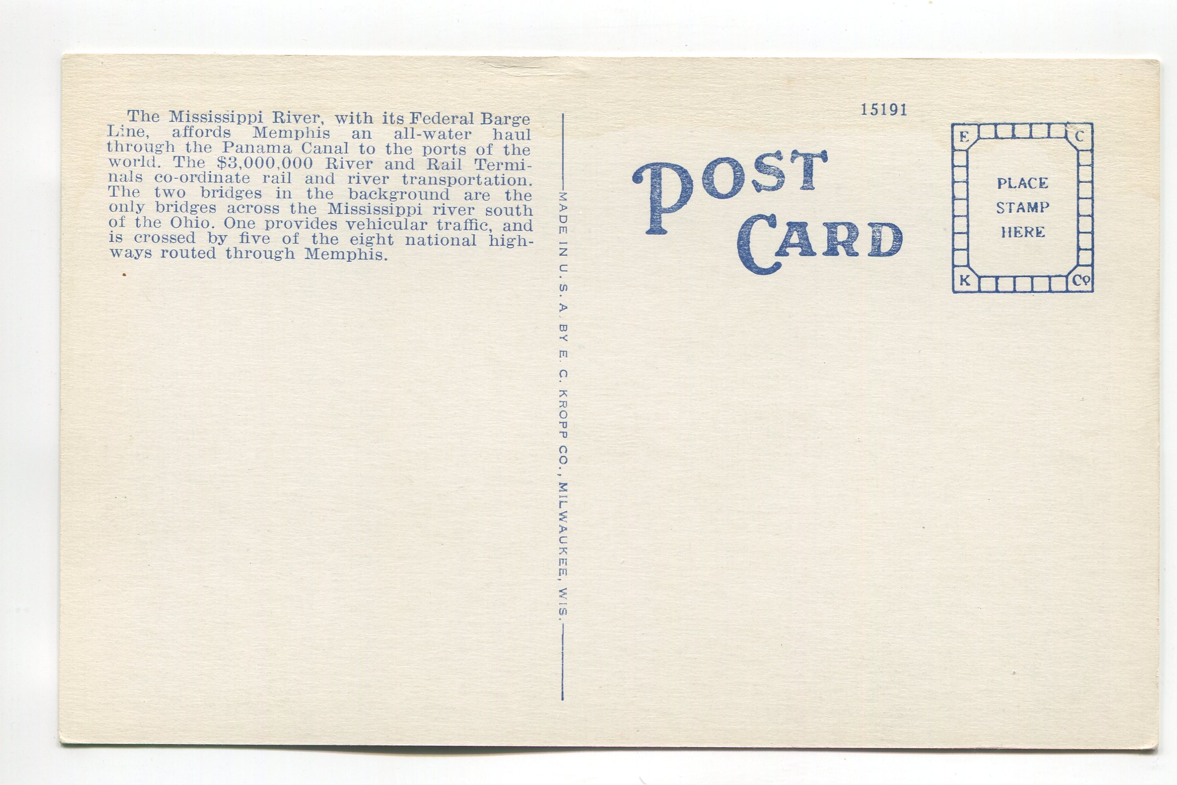 Municipal Terminals and Federal Barge Line Memphis Tennessee postcard