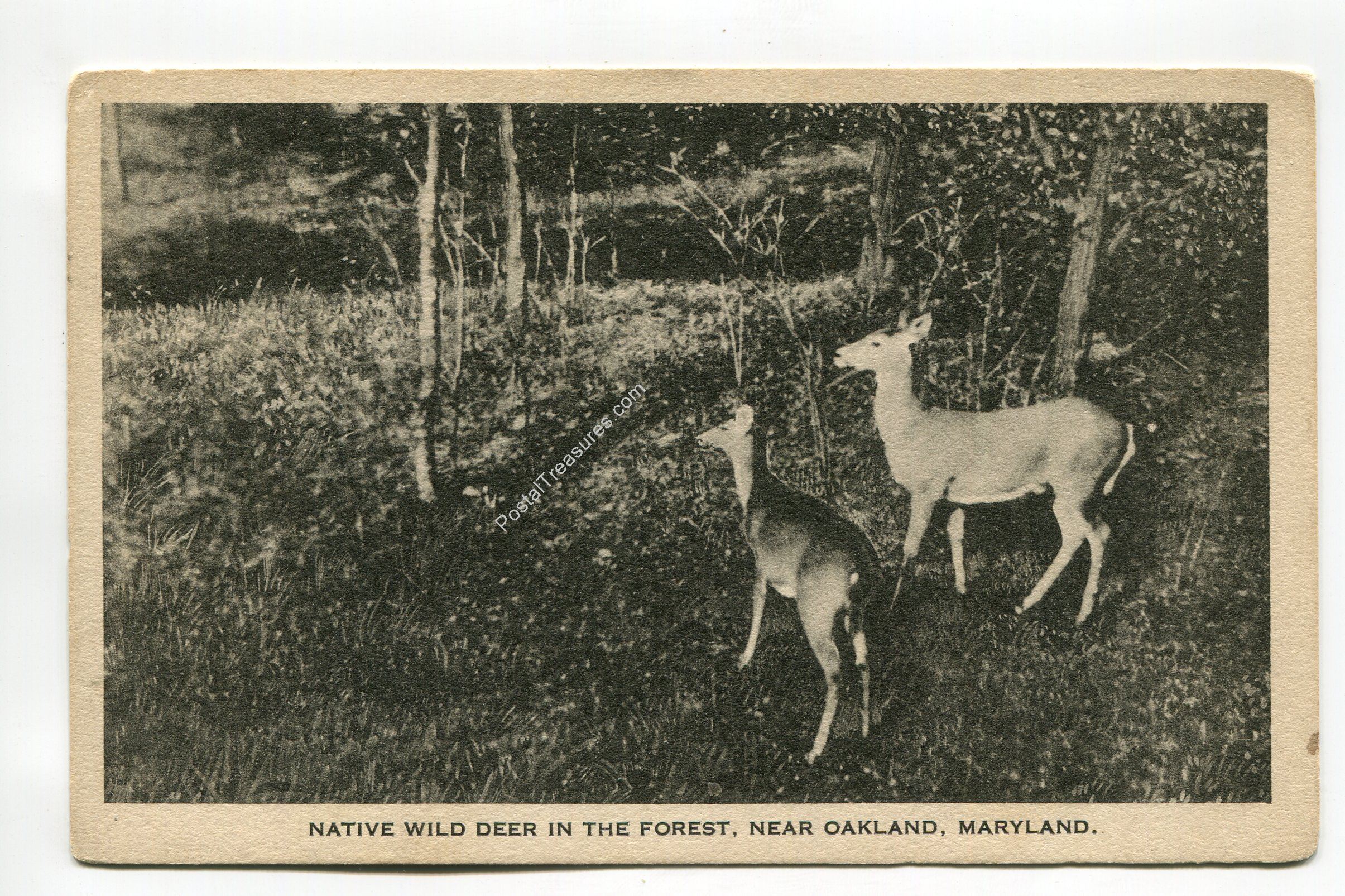 Native Wild Deer in the forest near Oakland Maryland postcard