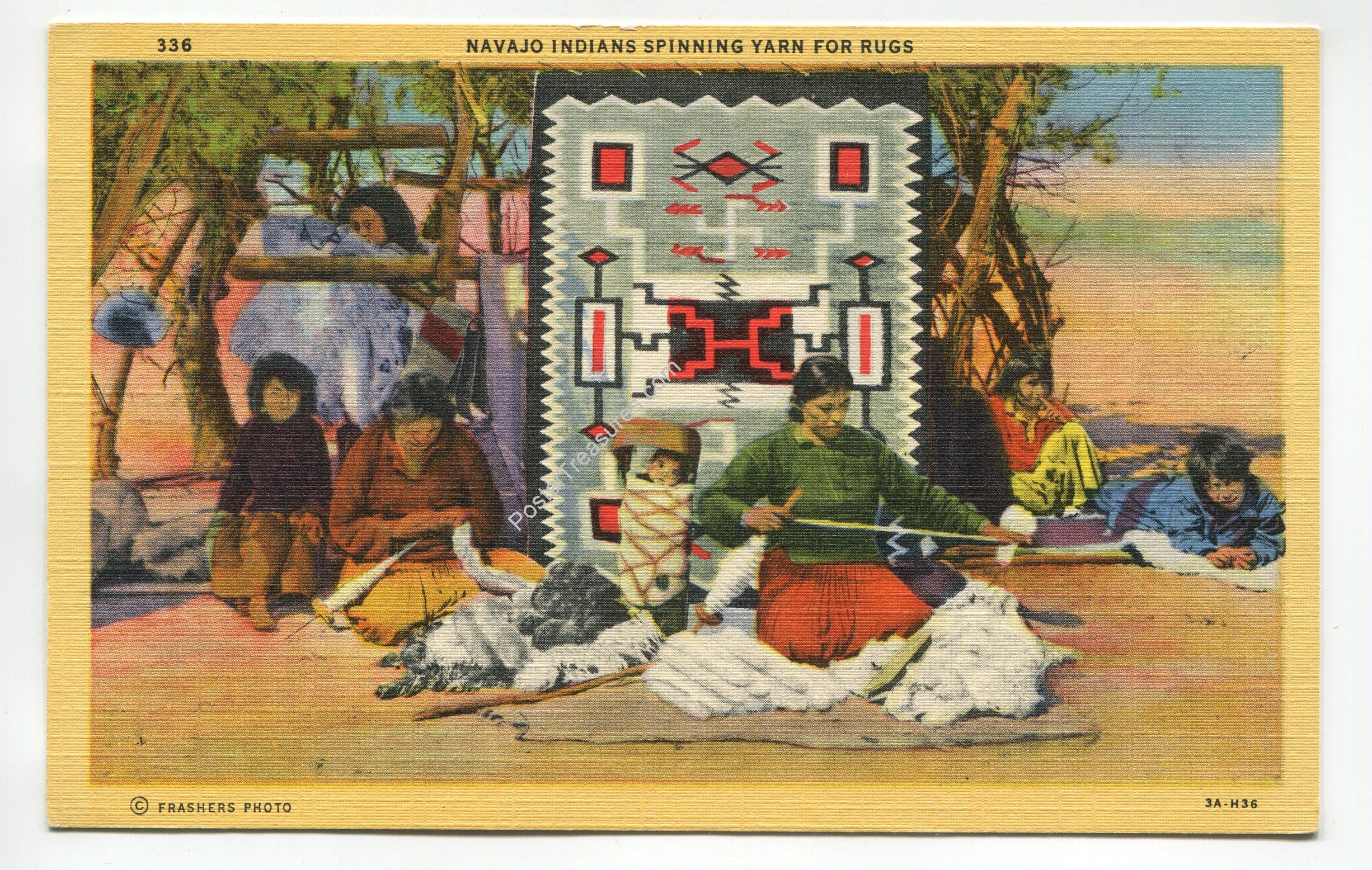 Navajo Indians Spinning Yarn for Rugs postcard