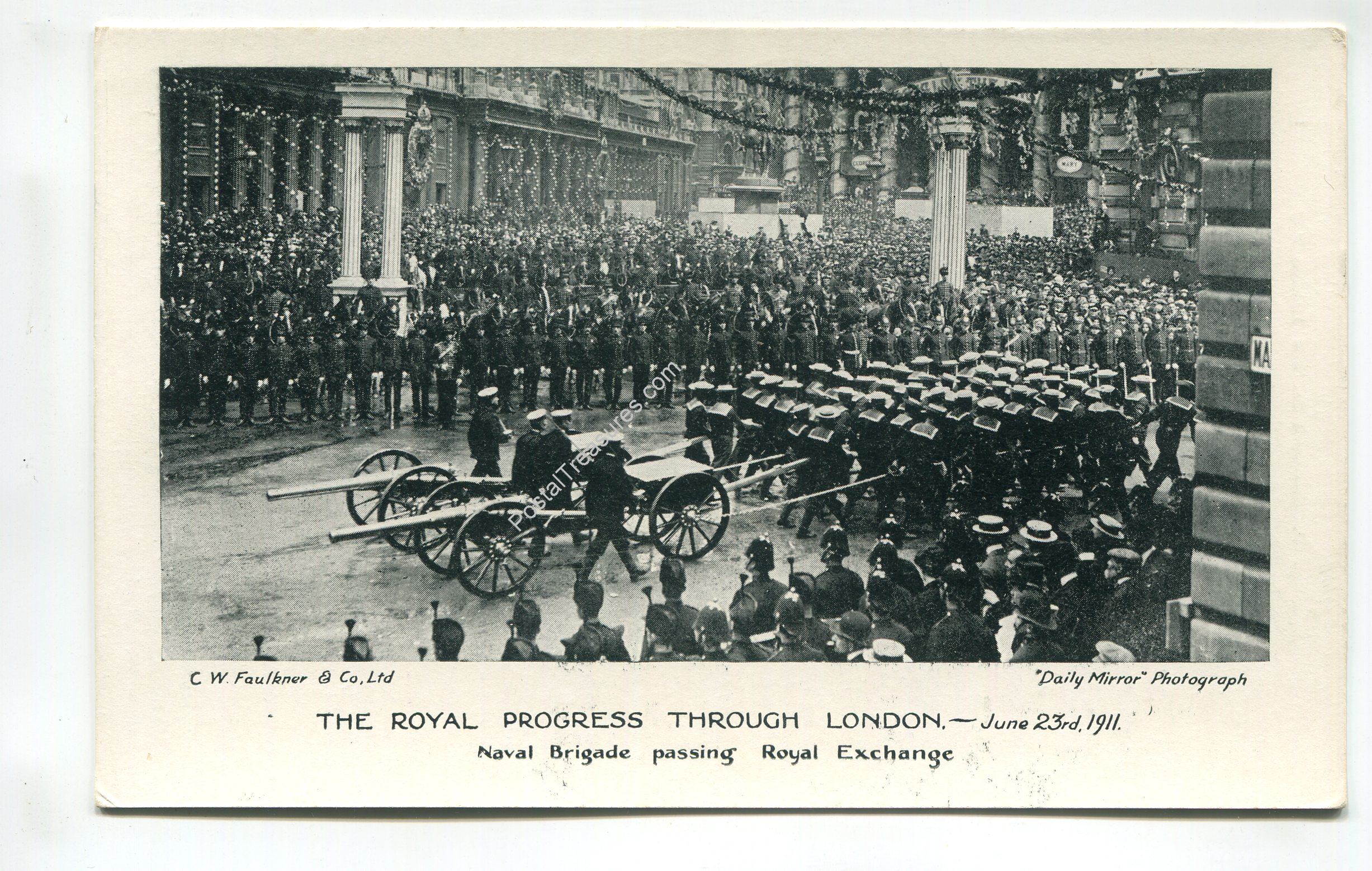 Naval Brigade passing Royal Exchange Royal Progress through London June 23rd 1911 postcard