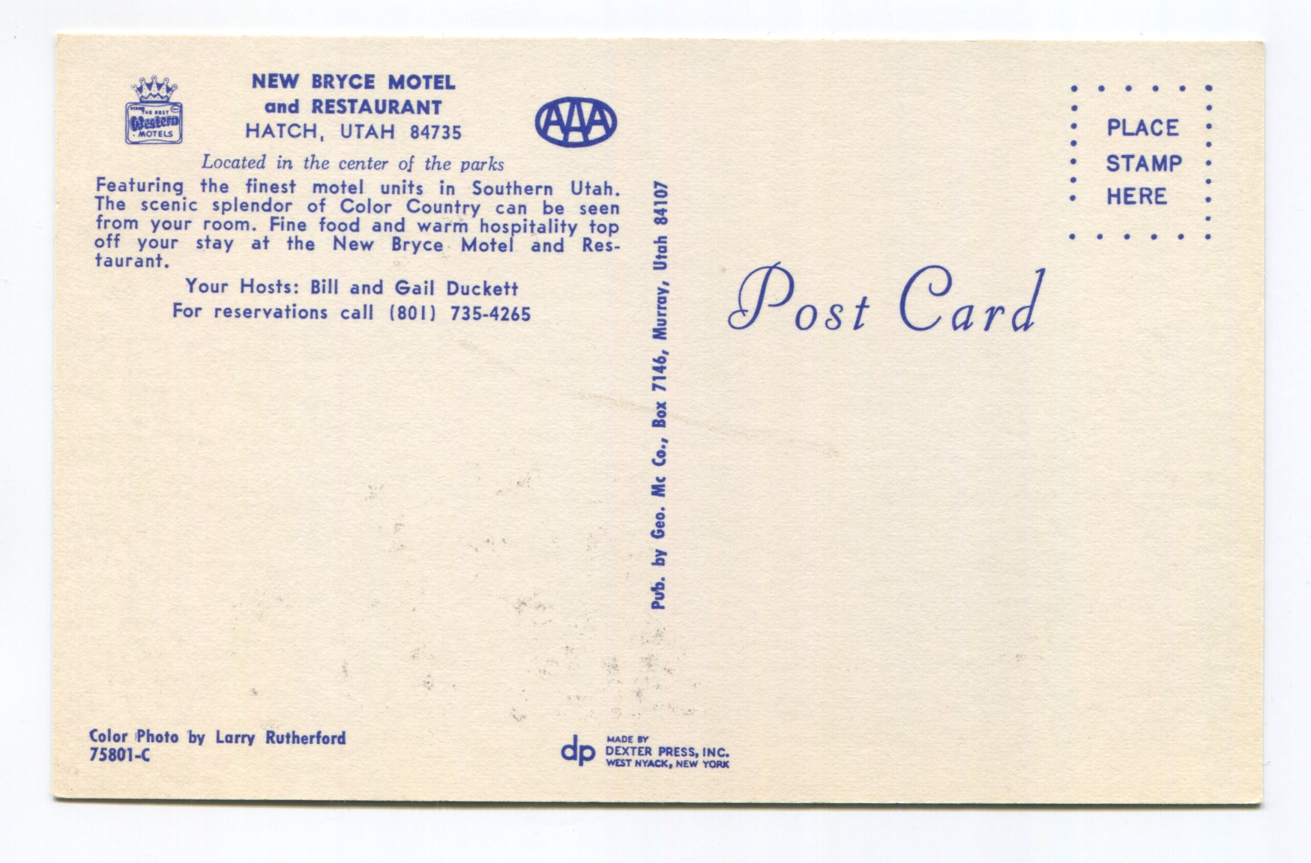 New Bryce Motel and Restaurant Hatch Utah postcard