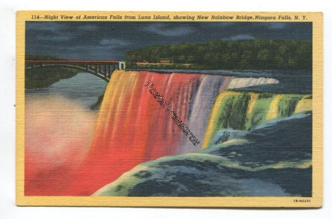 Night View of American Falls from Luna Island showing New Rainbow Bridge Niagara Falls New York quantity