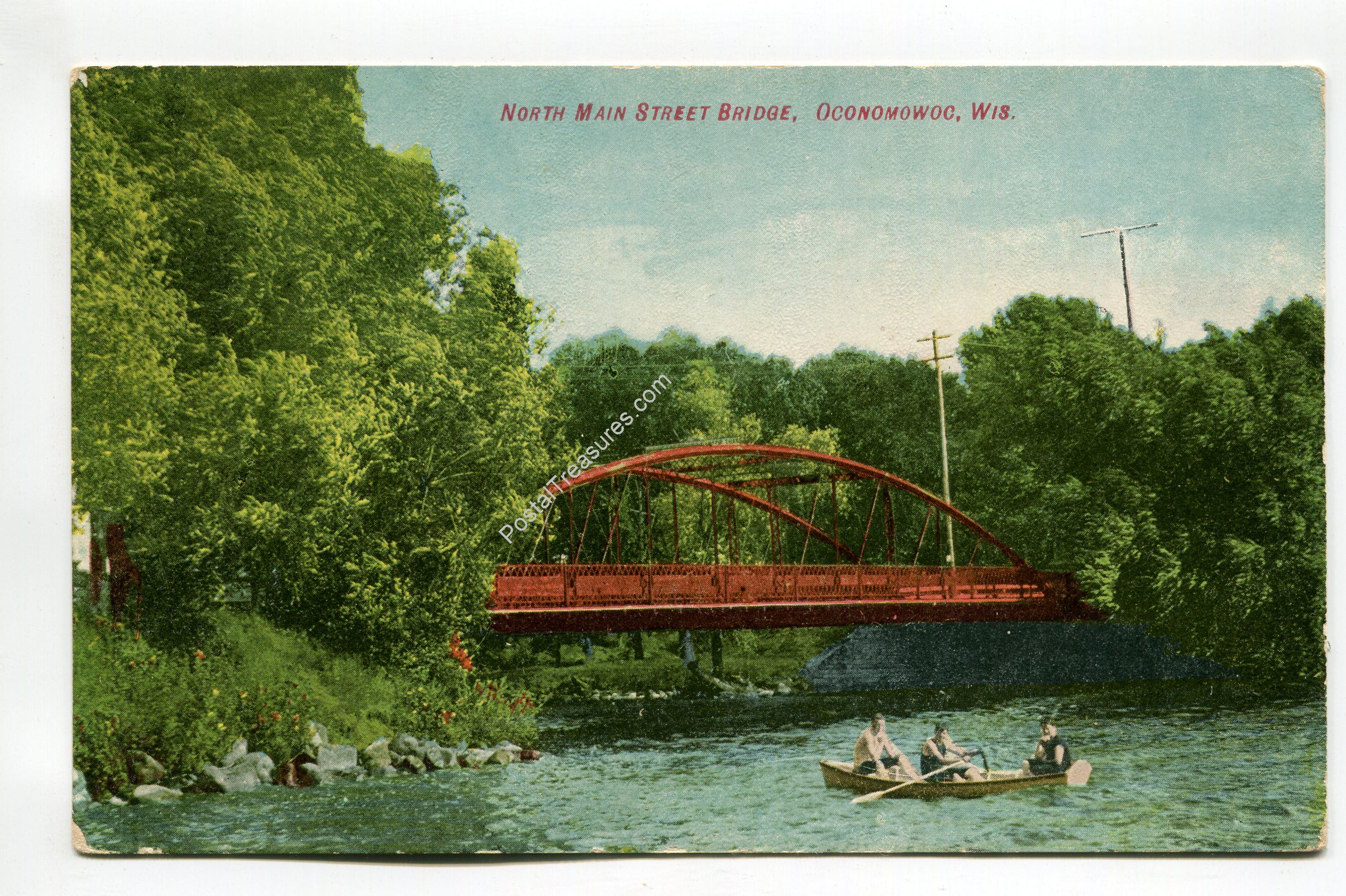 North Main Street Bridge Oconomowoo Wisconsin postcard