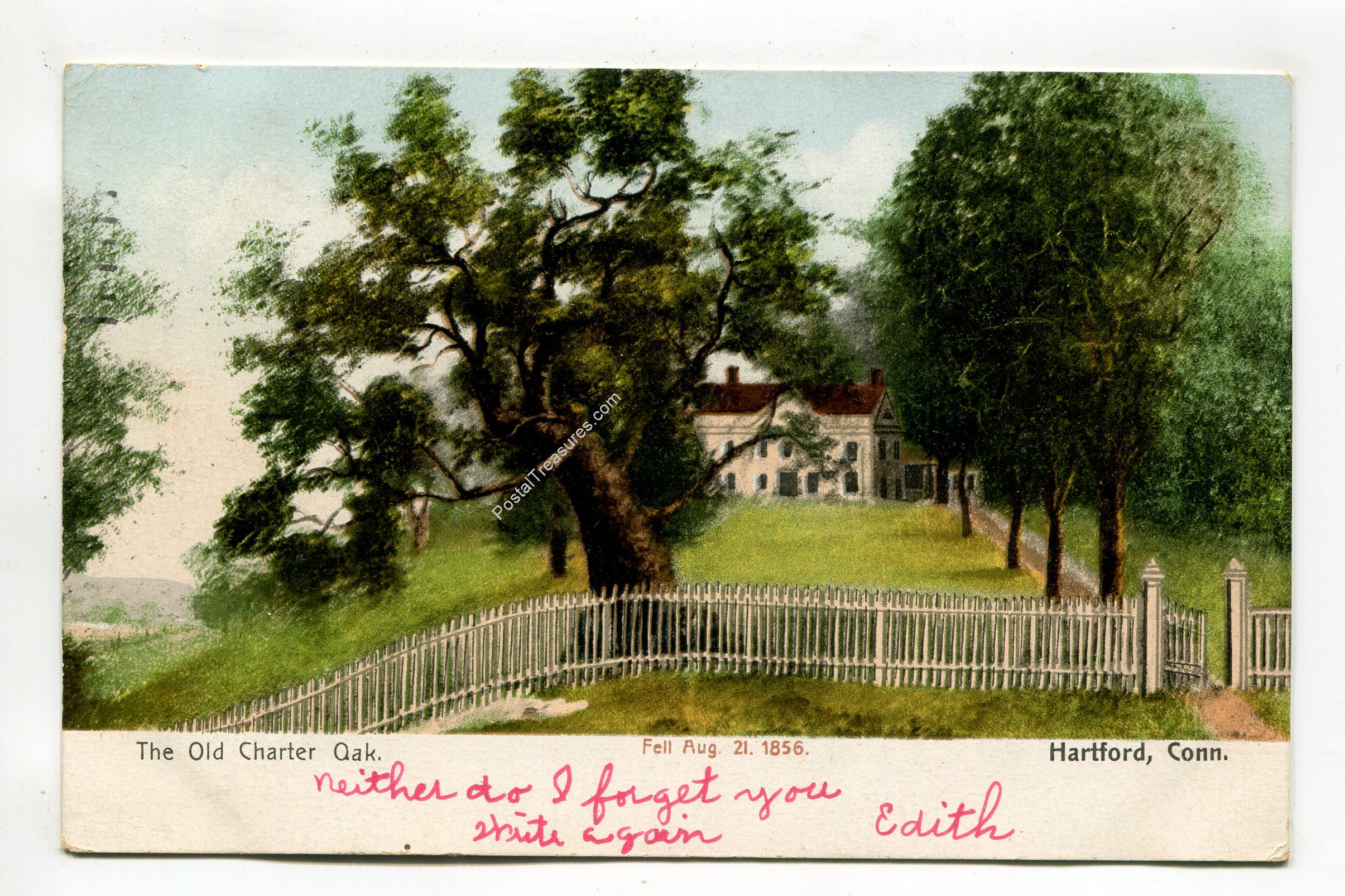 Old Charter Oak Hartford Connecticut Fall Aug 21 1856 postcard