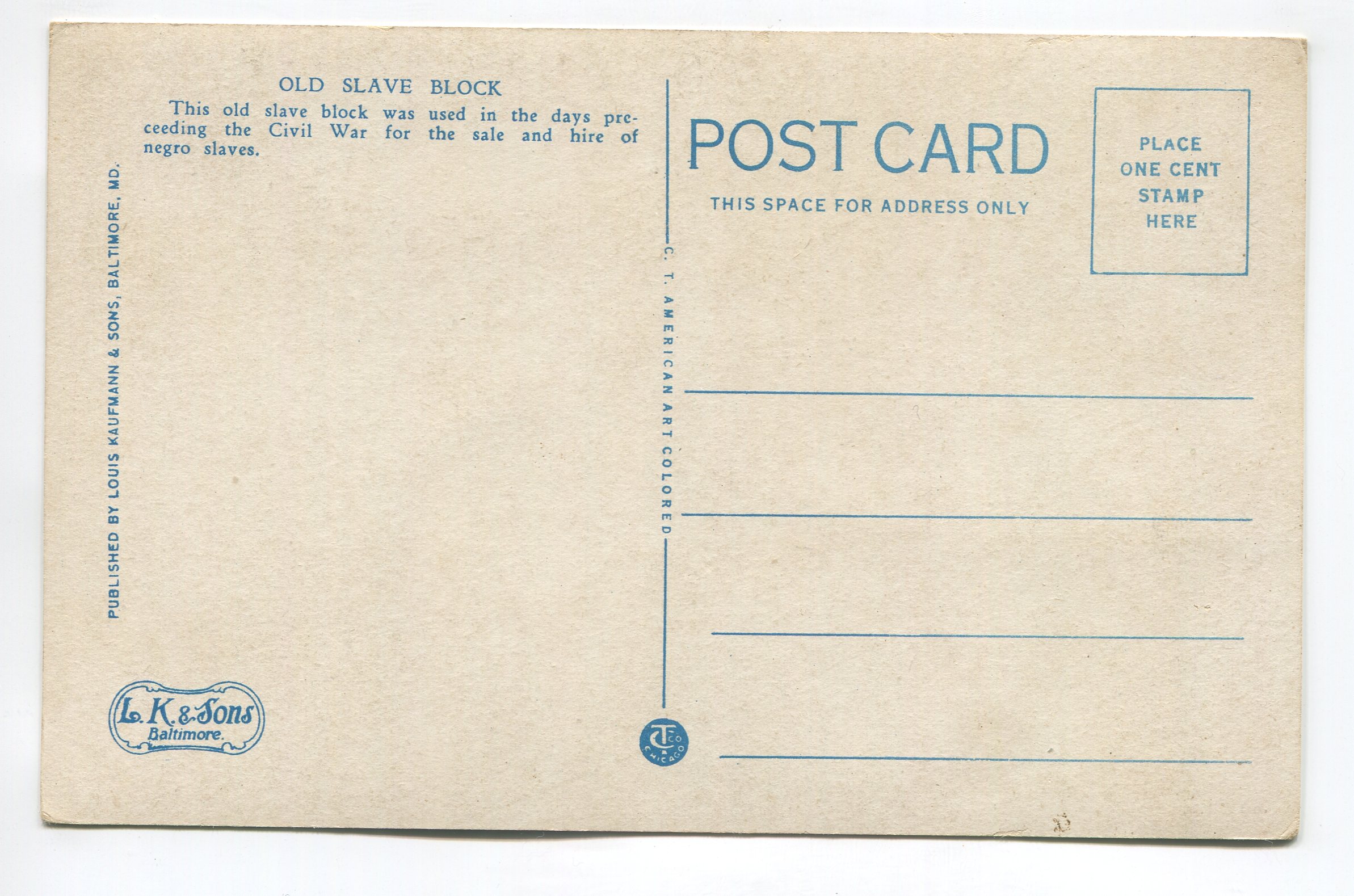Old Slave Block Fredericksburg Virginia postcard