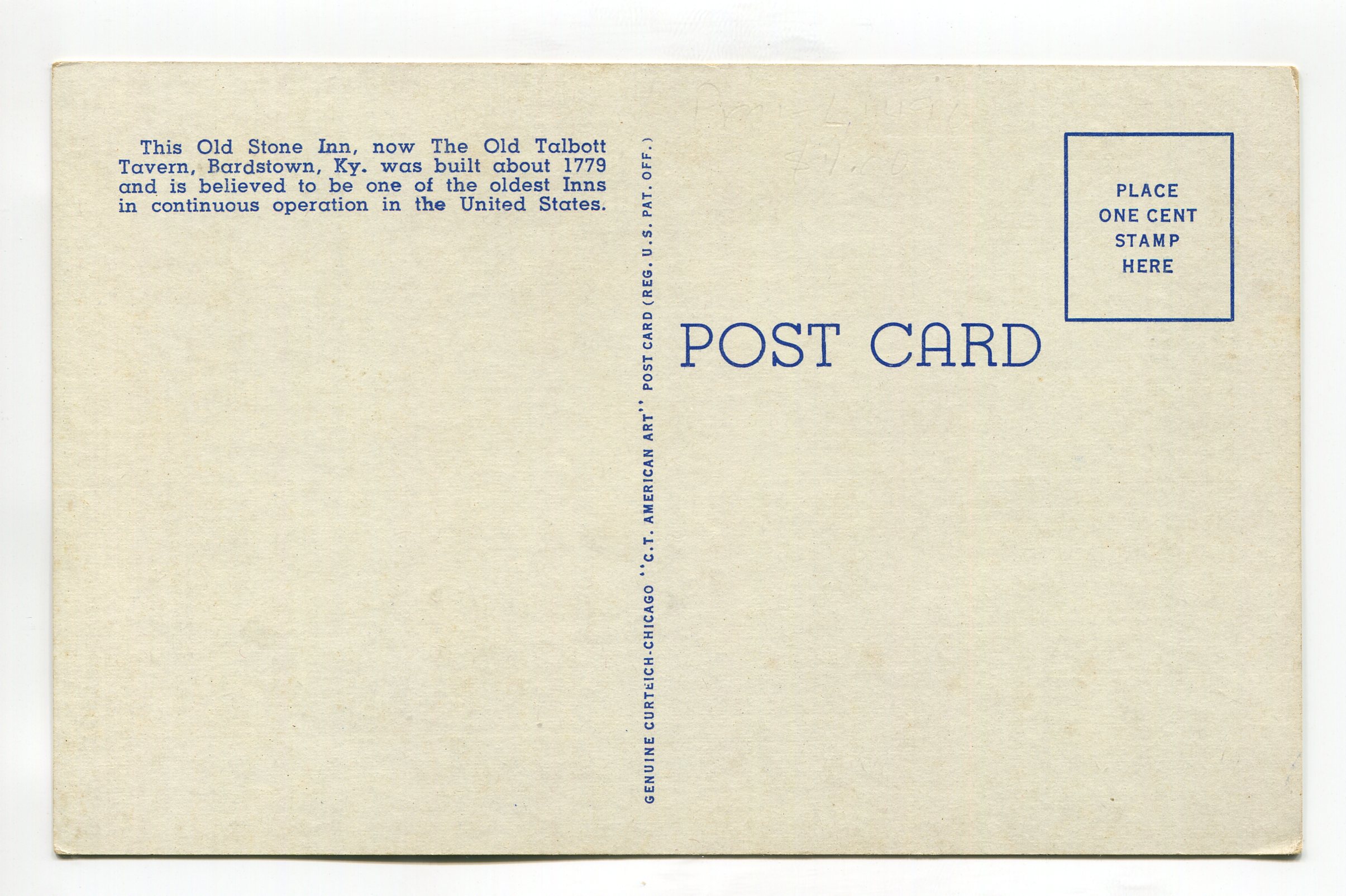 Old Stone Inn now the Talbott Tavern Bardstown Kentucky postcard