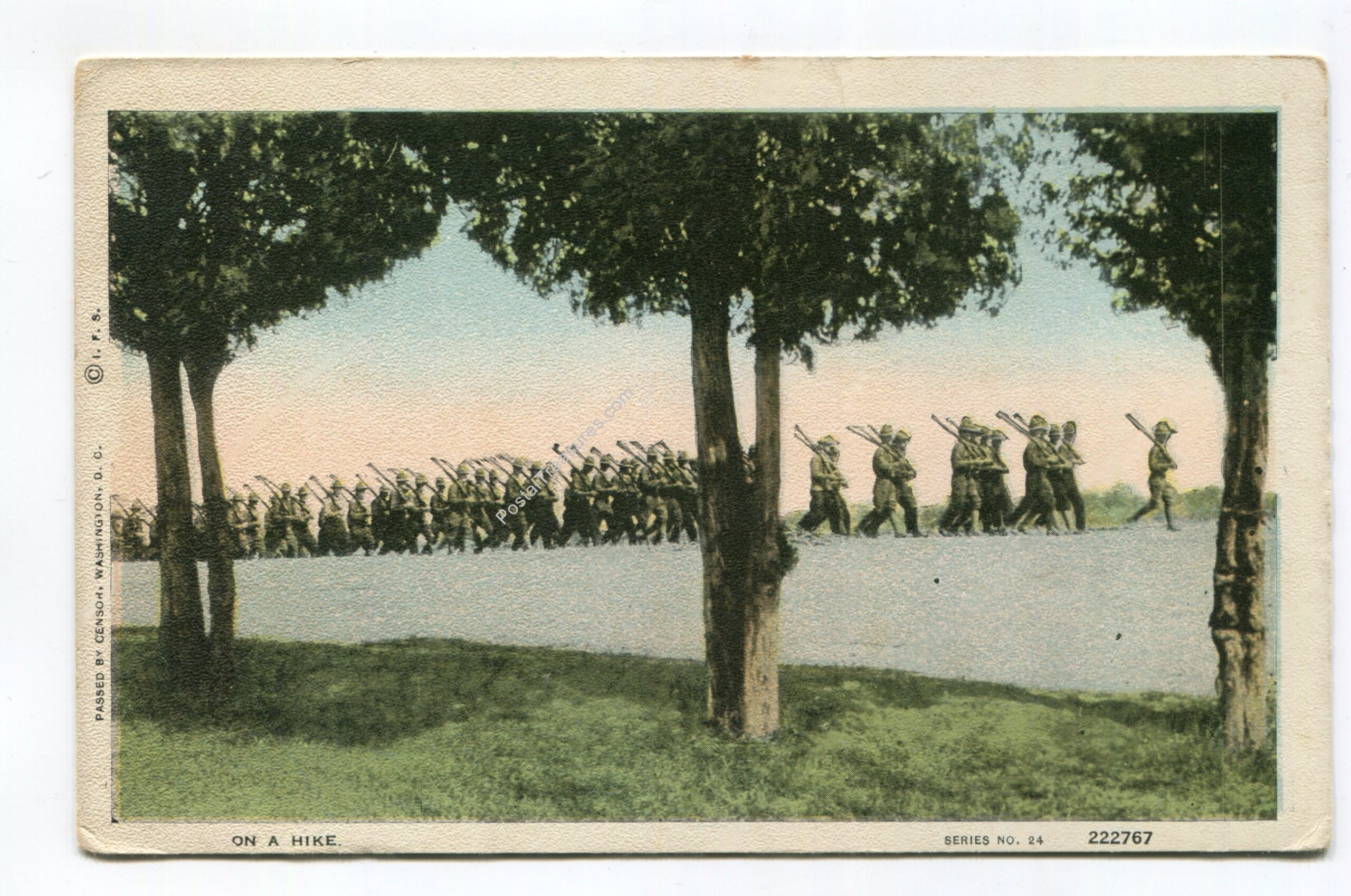 On a hike – soldiers postcard