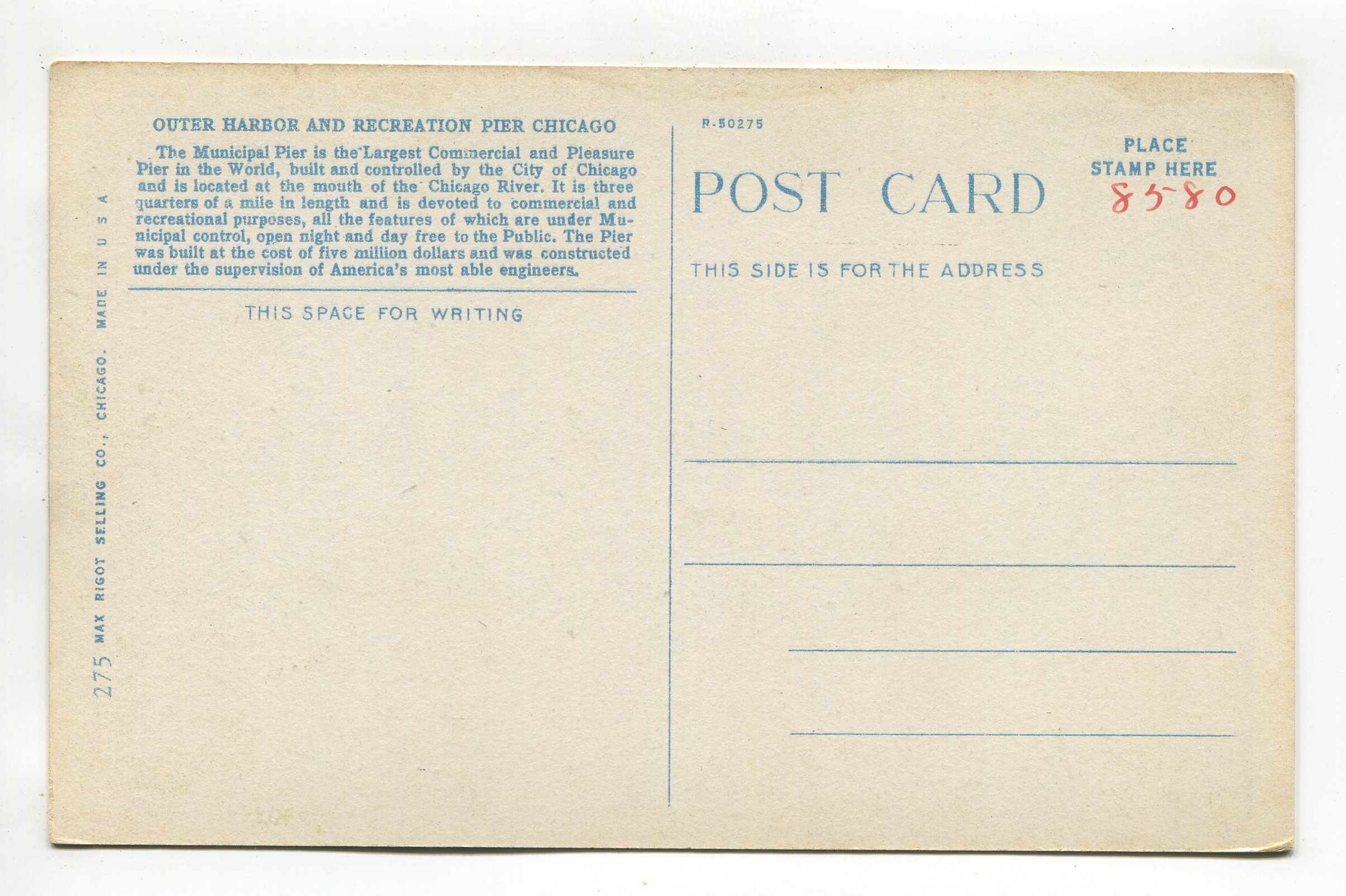 Outer Harbor and Recreation Pier Chicago postcard