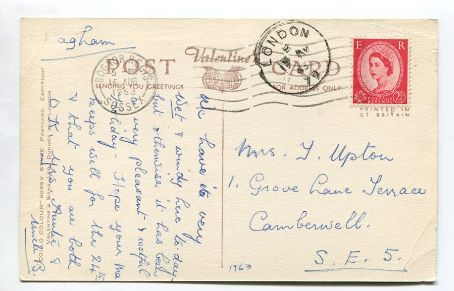 Condition – corner/edge wear, creases in both left corners, cancelation impression/marks visible on card front, soiling/marks
