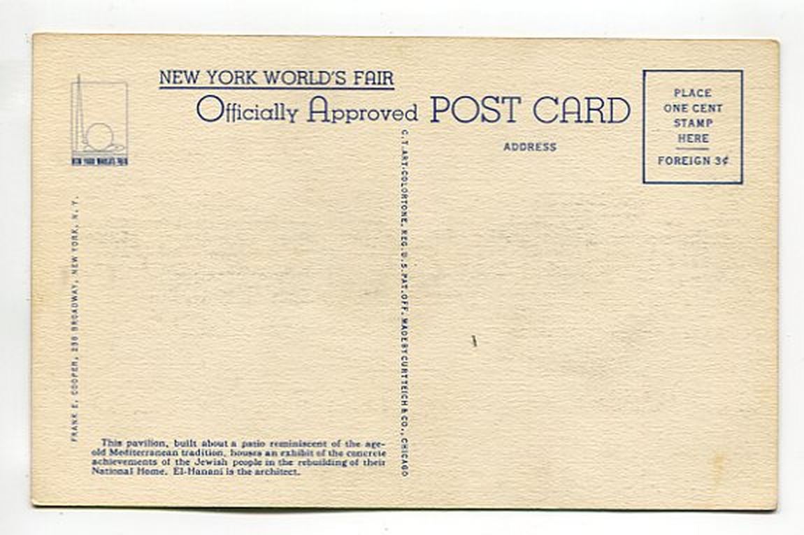 Palestine Exhibits Building New York World’s Fair 1939 postcard