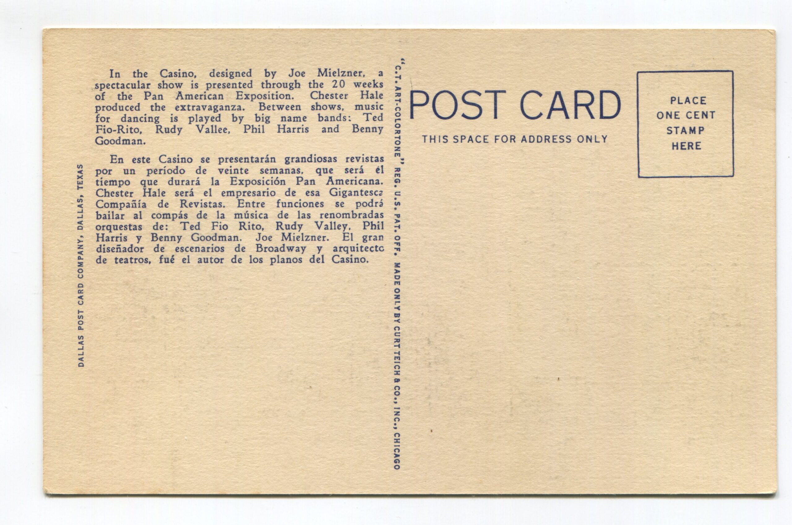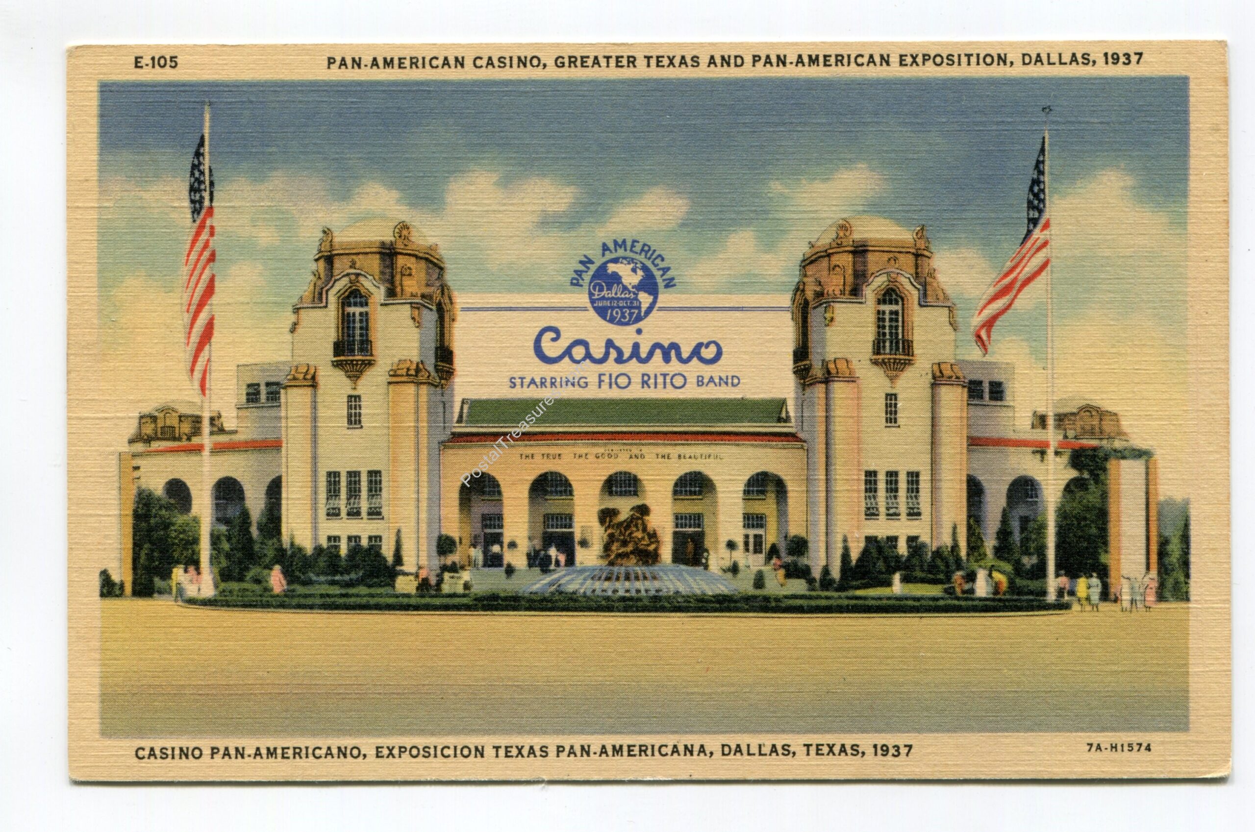 Pan-American Casino Greater Texas and Pan-American Exposition Dallas 1937 postcard