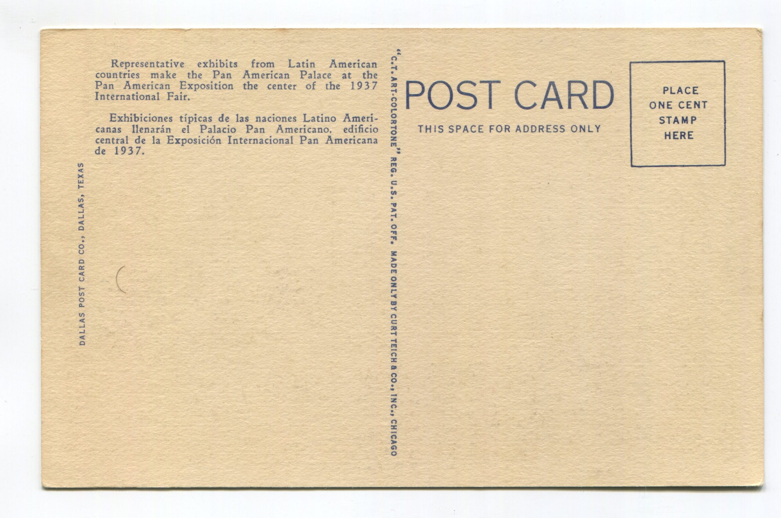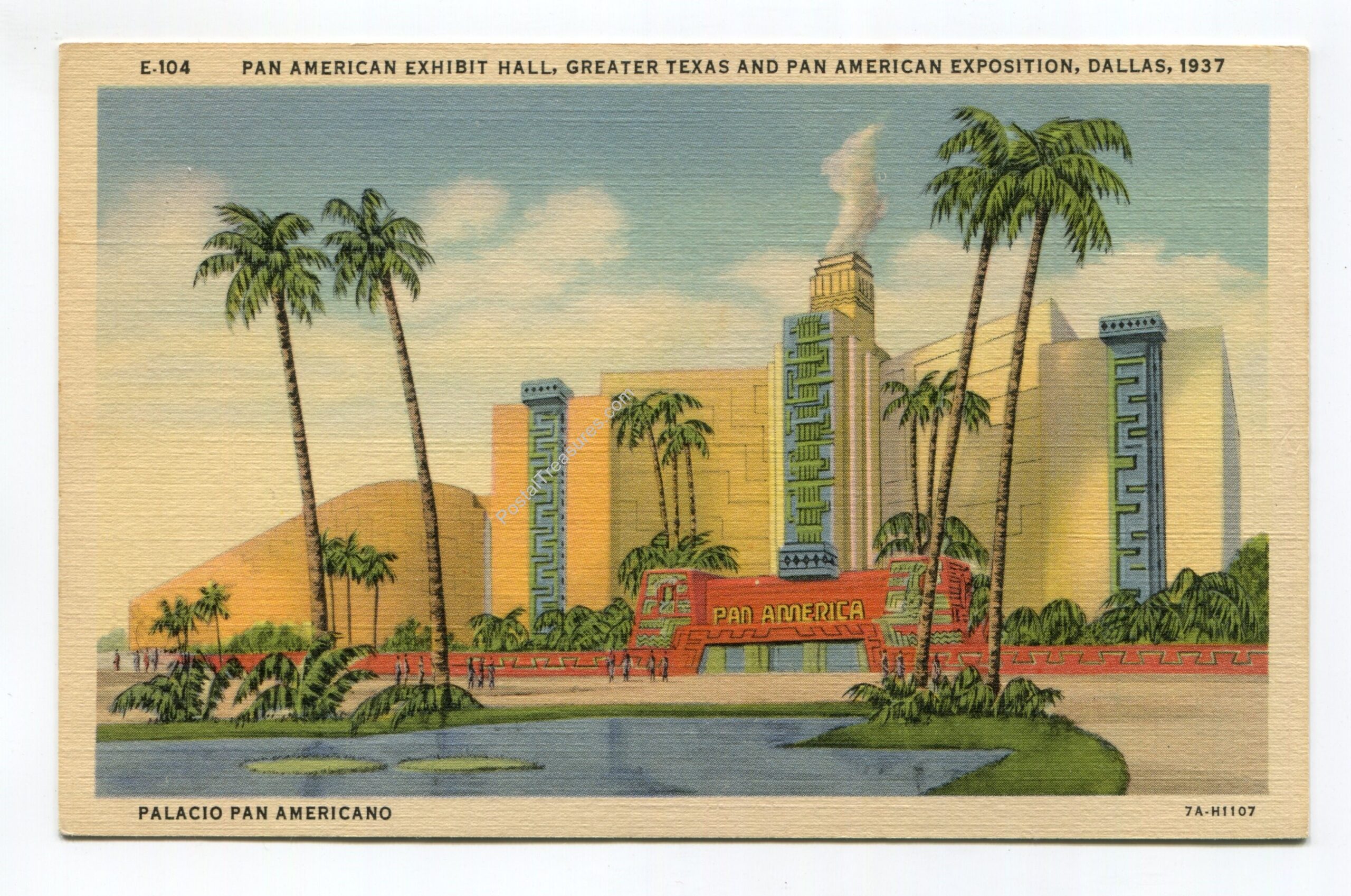 Pan American Exhibit Hall Greater Texas and Pan American Exposition Dallas 1937 postcard