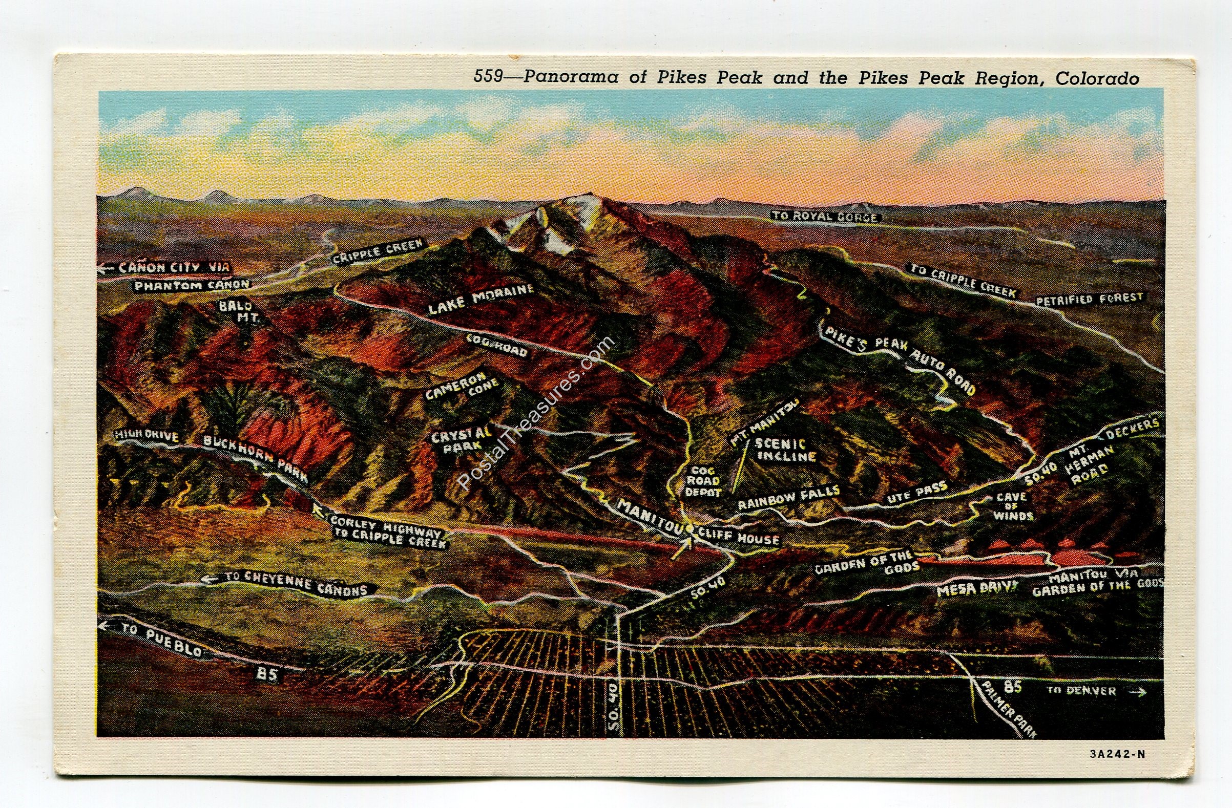 Panorama of Pikes Peak and the Pikes Peak Region Colorado postcard