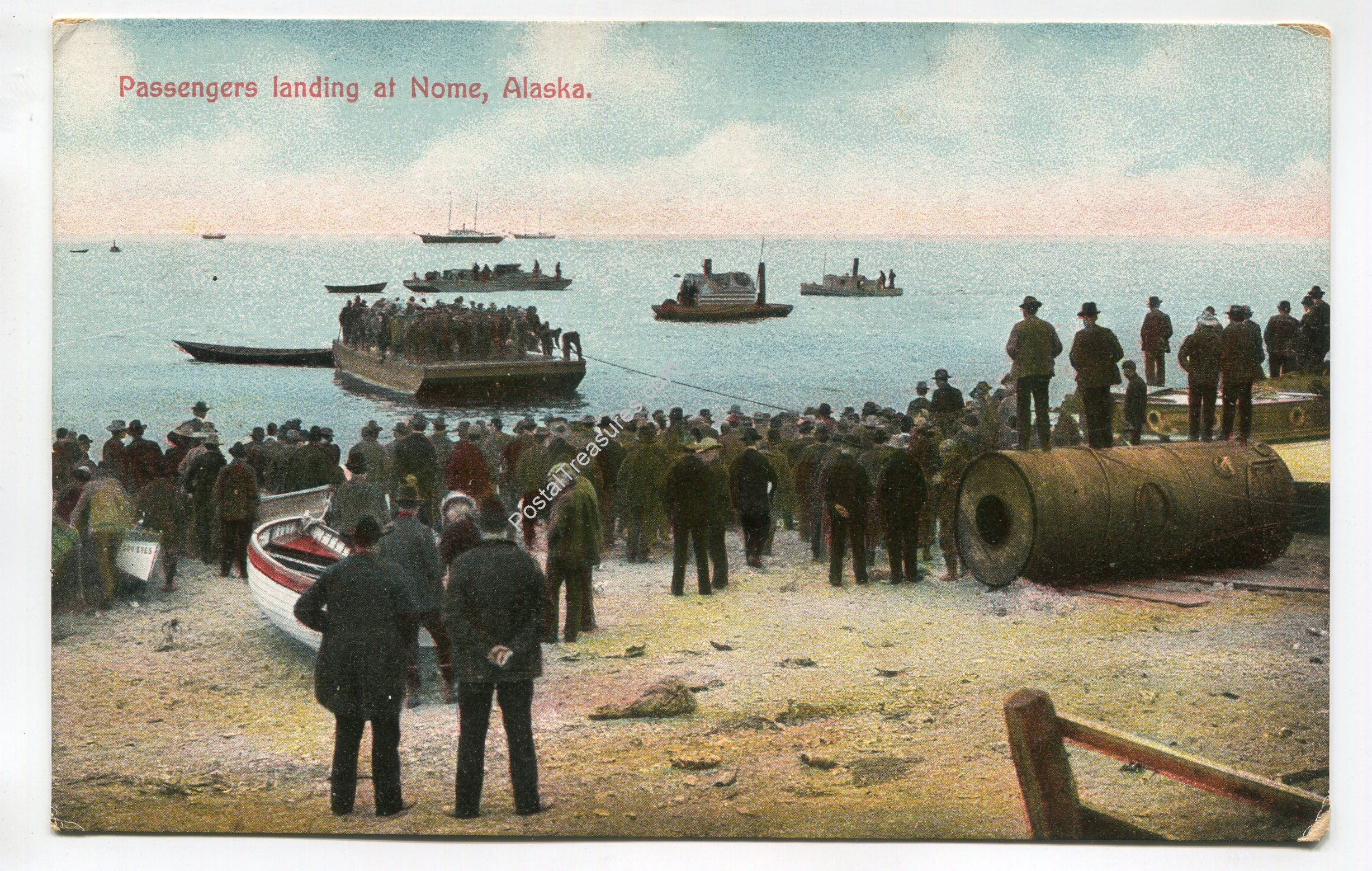 Passengers land at Nome Alaska postcard