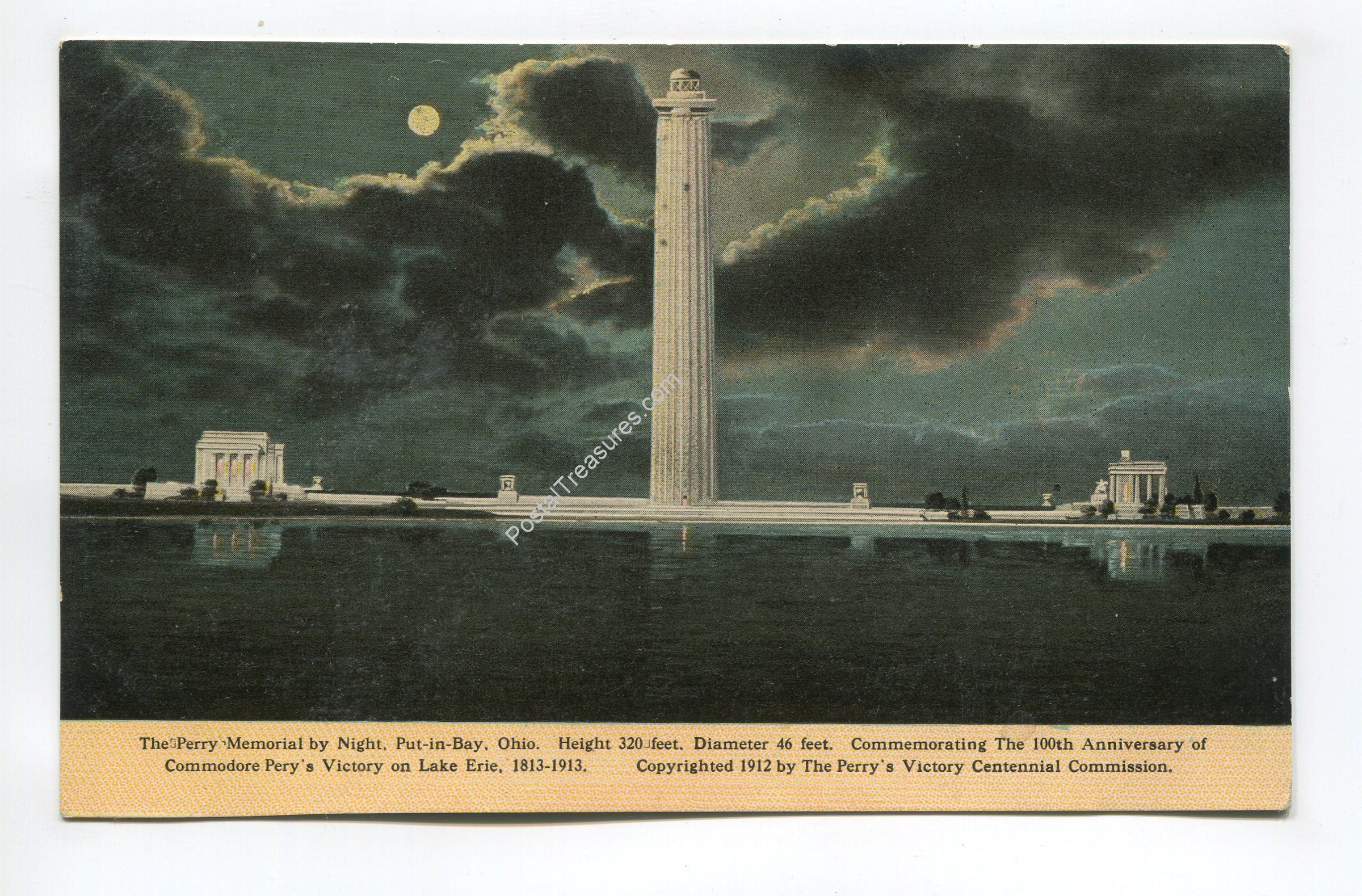 Perry Memorial by Night Put-in-Bay Ohio postcard