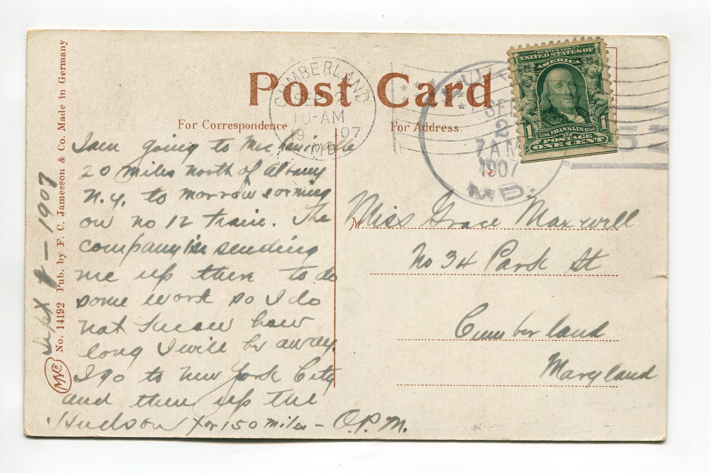 Condition – corner/edge wear, tear in left edge below center, writing in skyline, soiling/marks