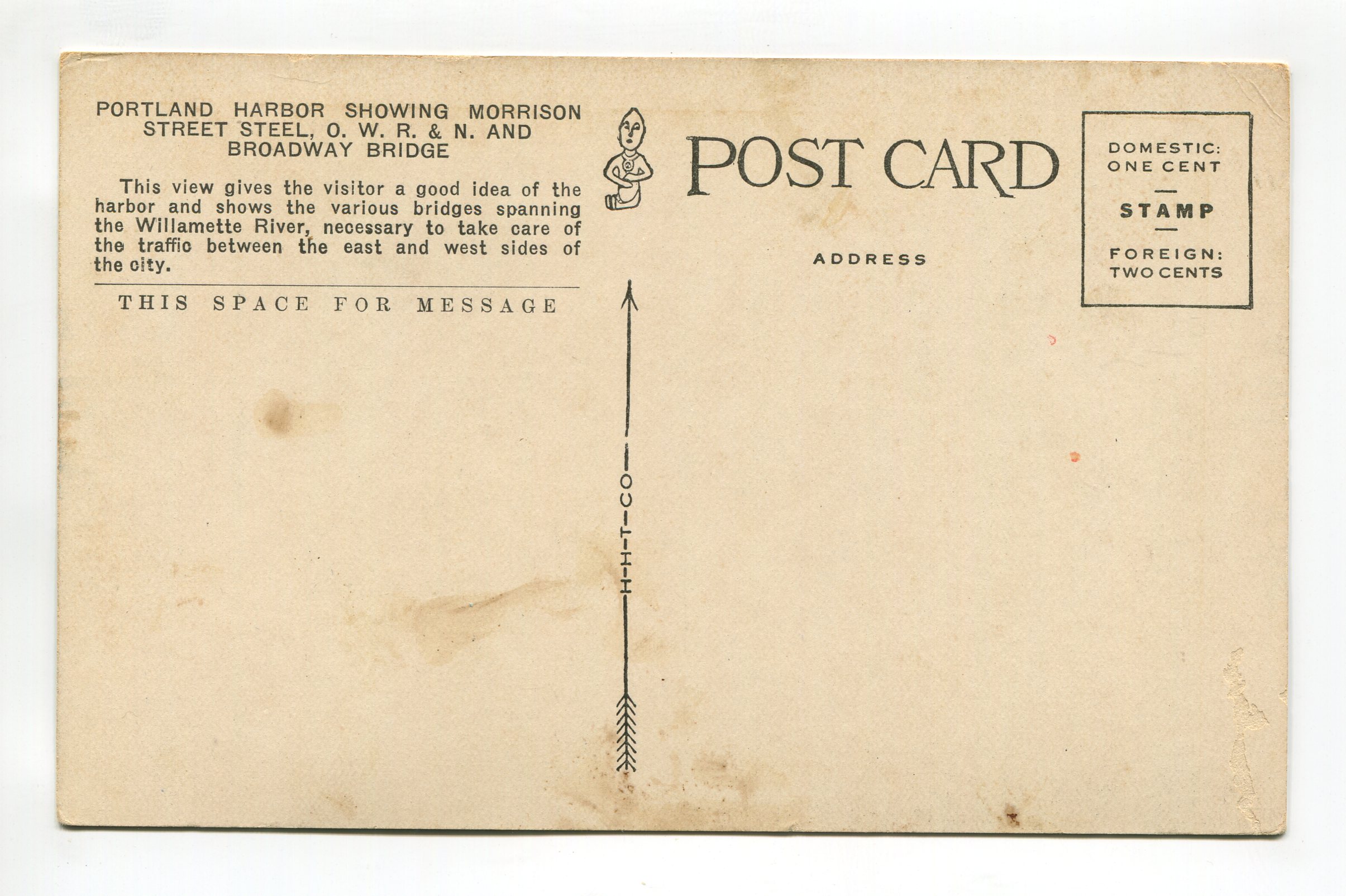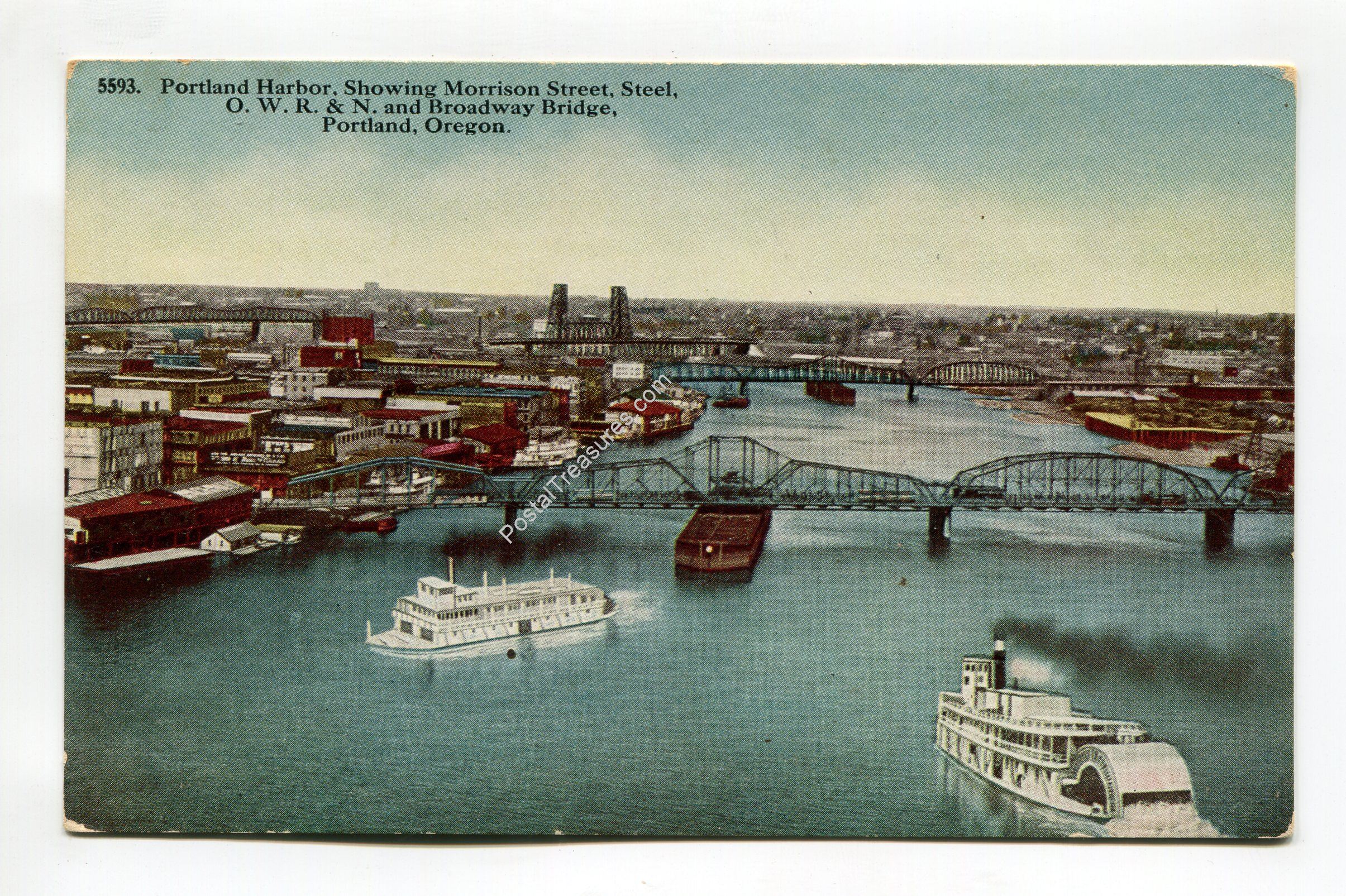 Portland Harbor showing Morrison Street O W R and N and Broadway Bridge postcard