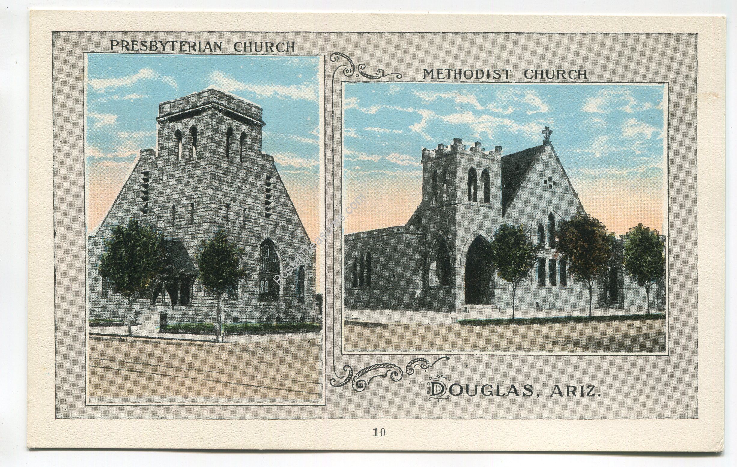 Presbyterian Church and Methodist Church Douglas Arizona postcard