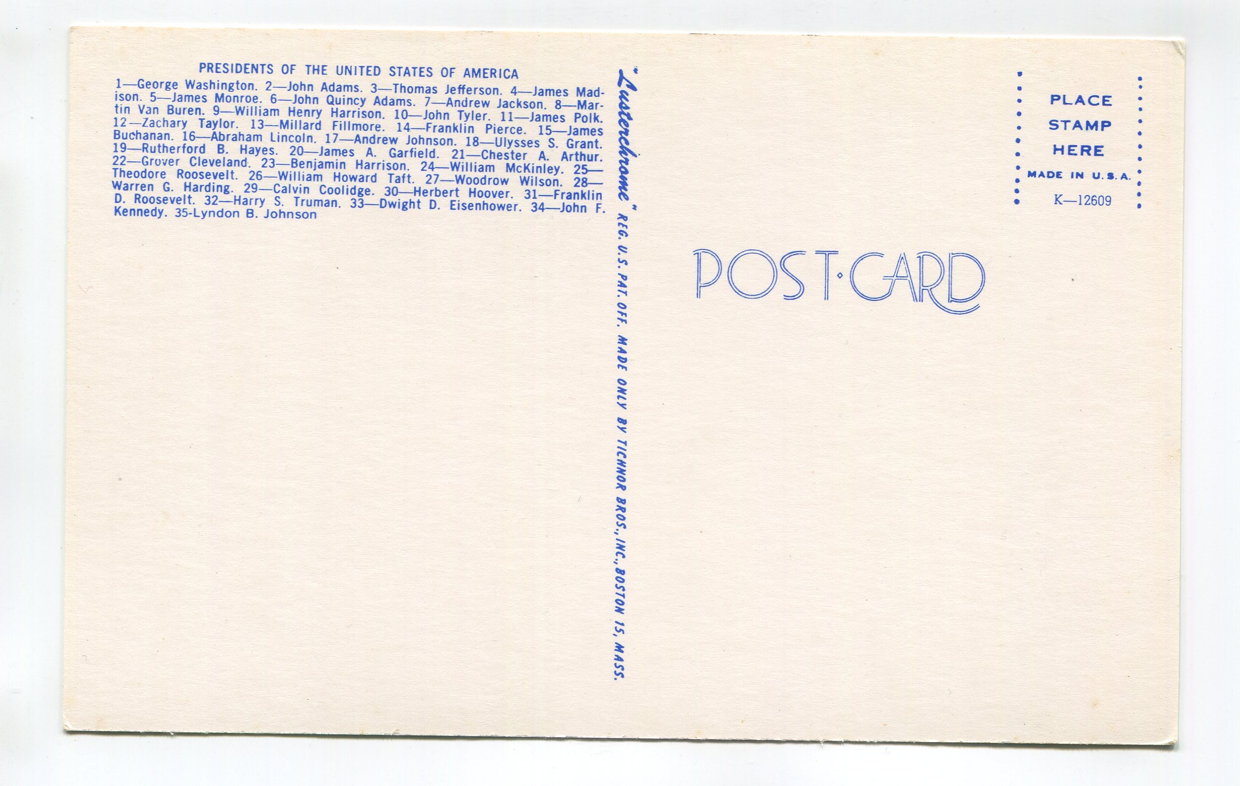 Presidents of the United States of America postcard