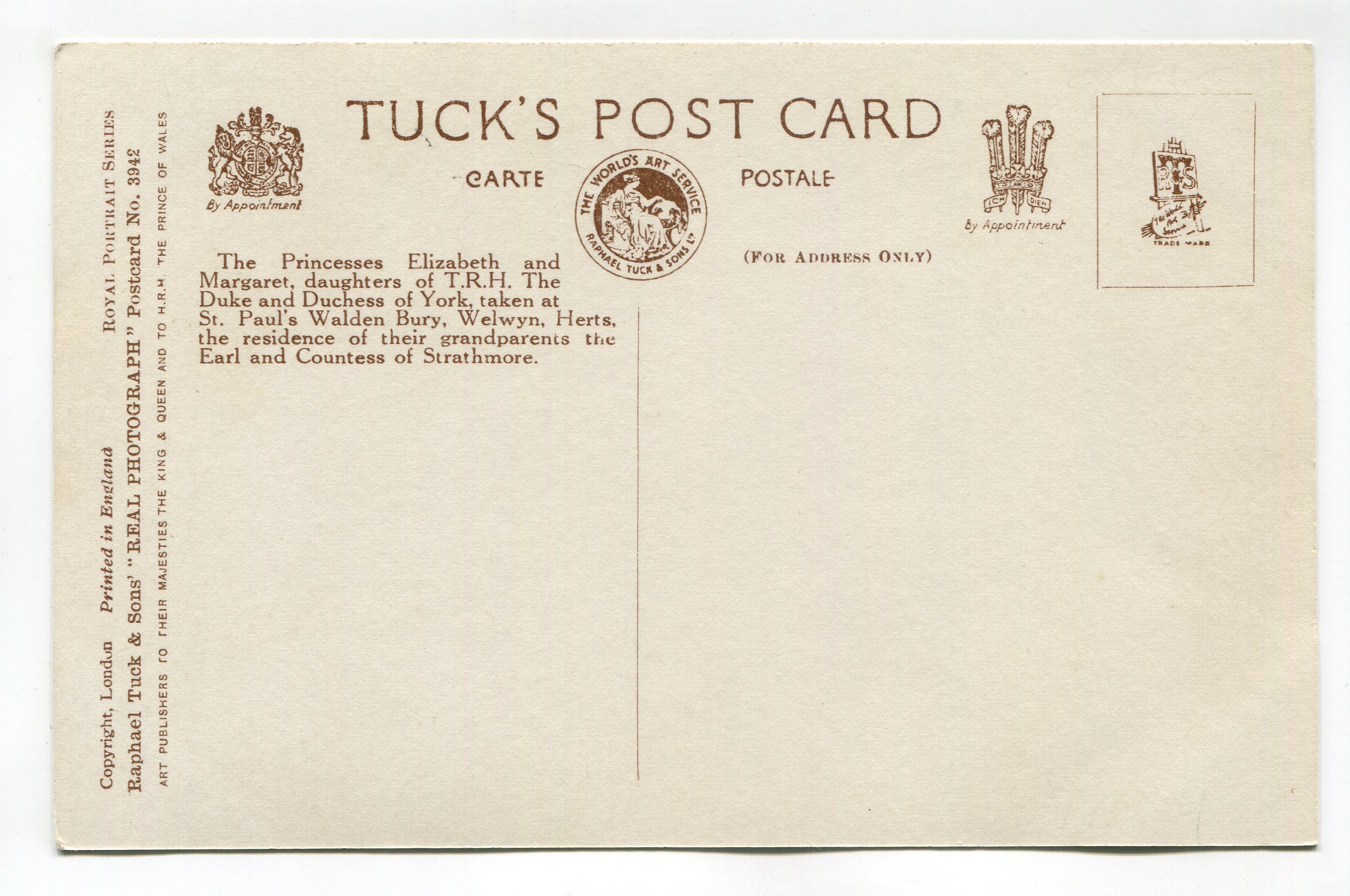 Princesses Elizabeth and Margaret of York postcard