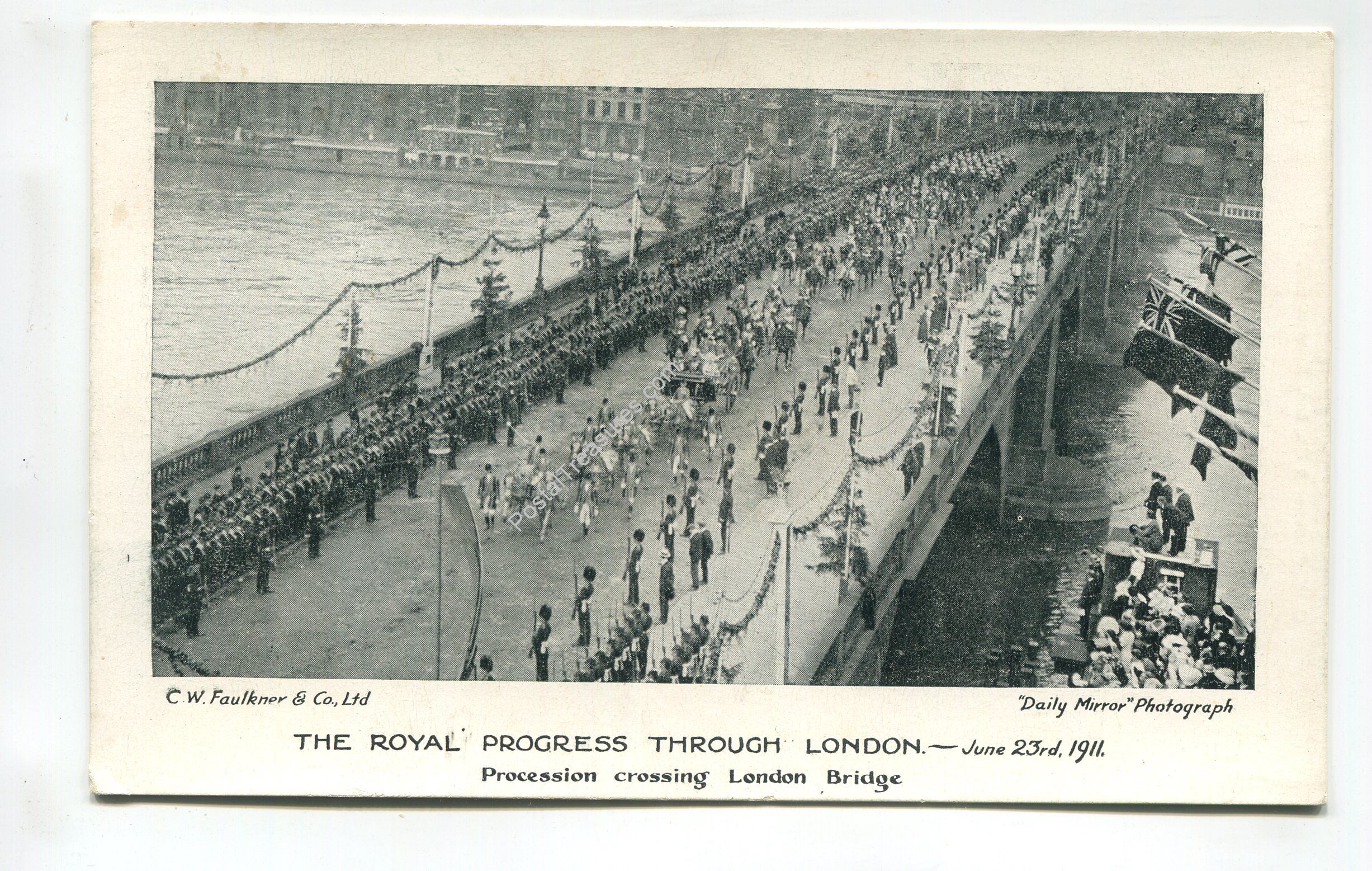 Procession crossing London Bridge Royal Progress through London June 23rd 1911 postcard