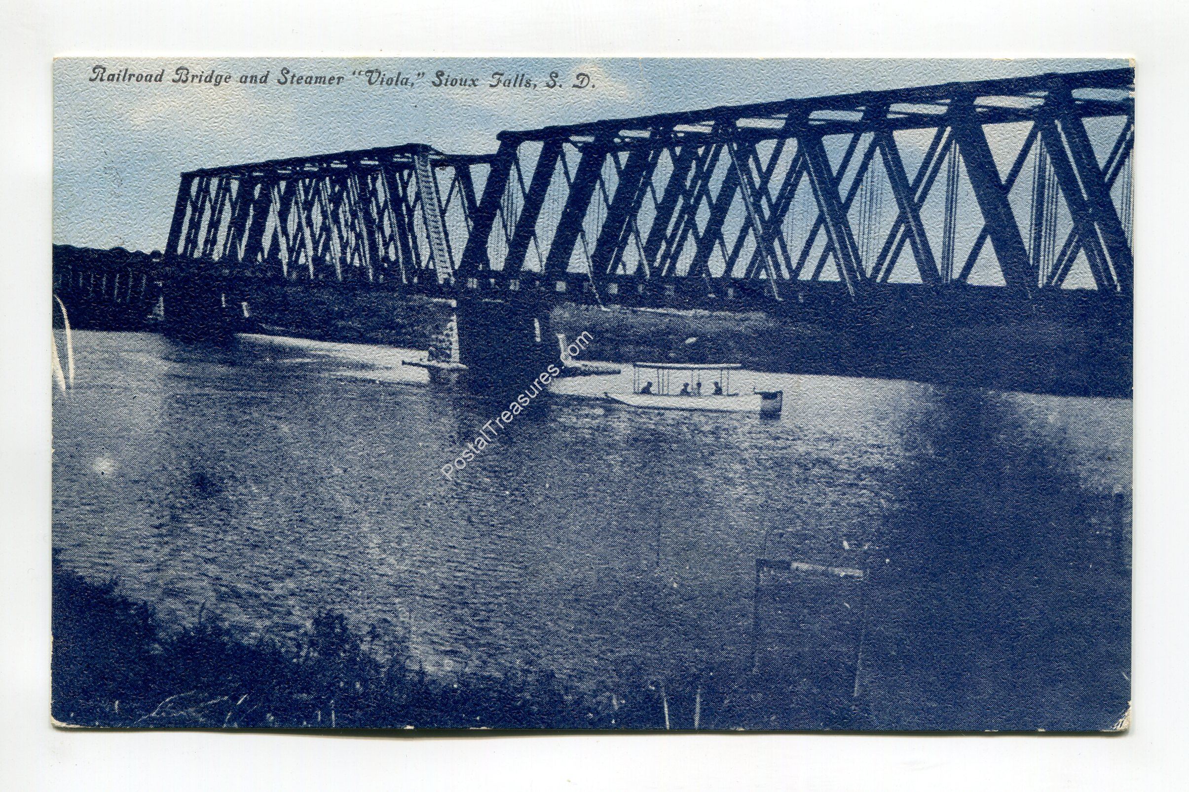 Railroad Bridge and Steamer Viola Sioux Falls South Dakota postcard