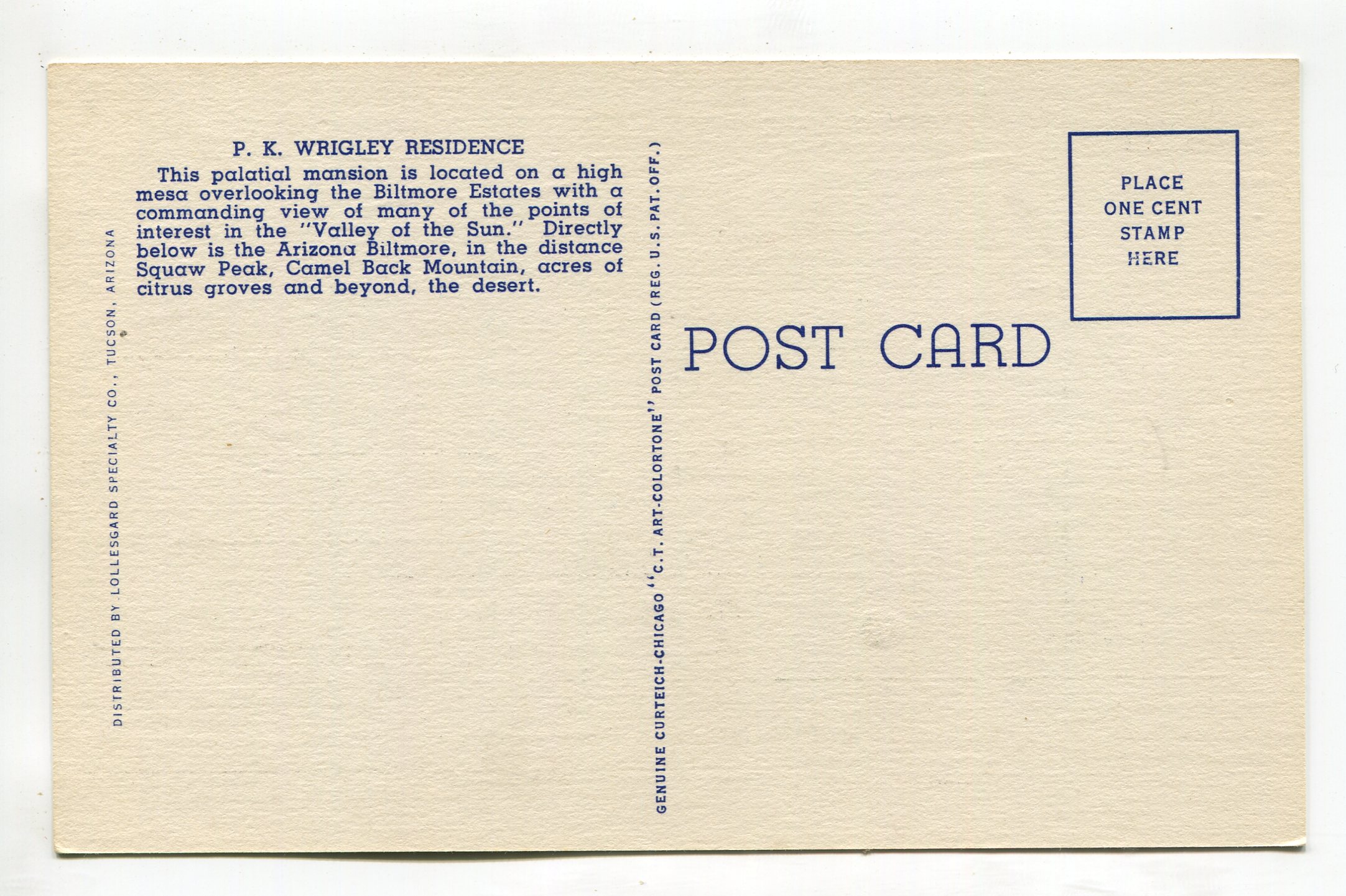 Residence of P K Wrigley Biltmore Estates Phoenix Arizona postcard