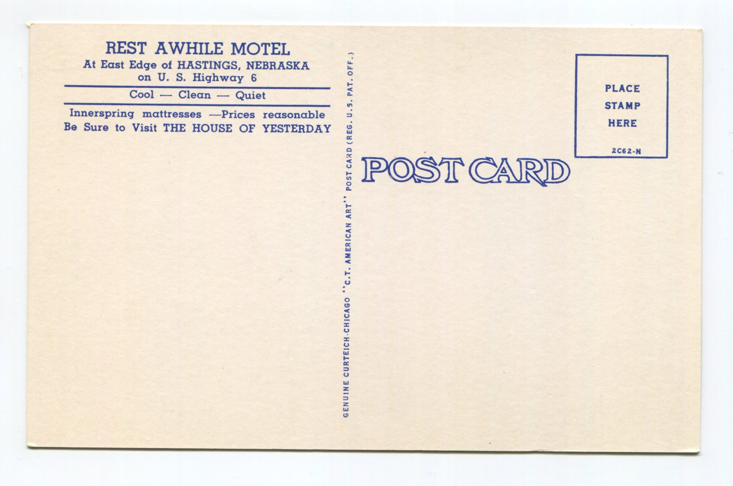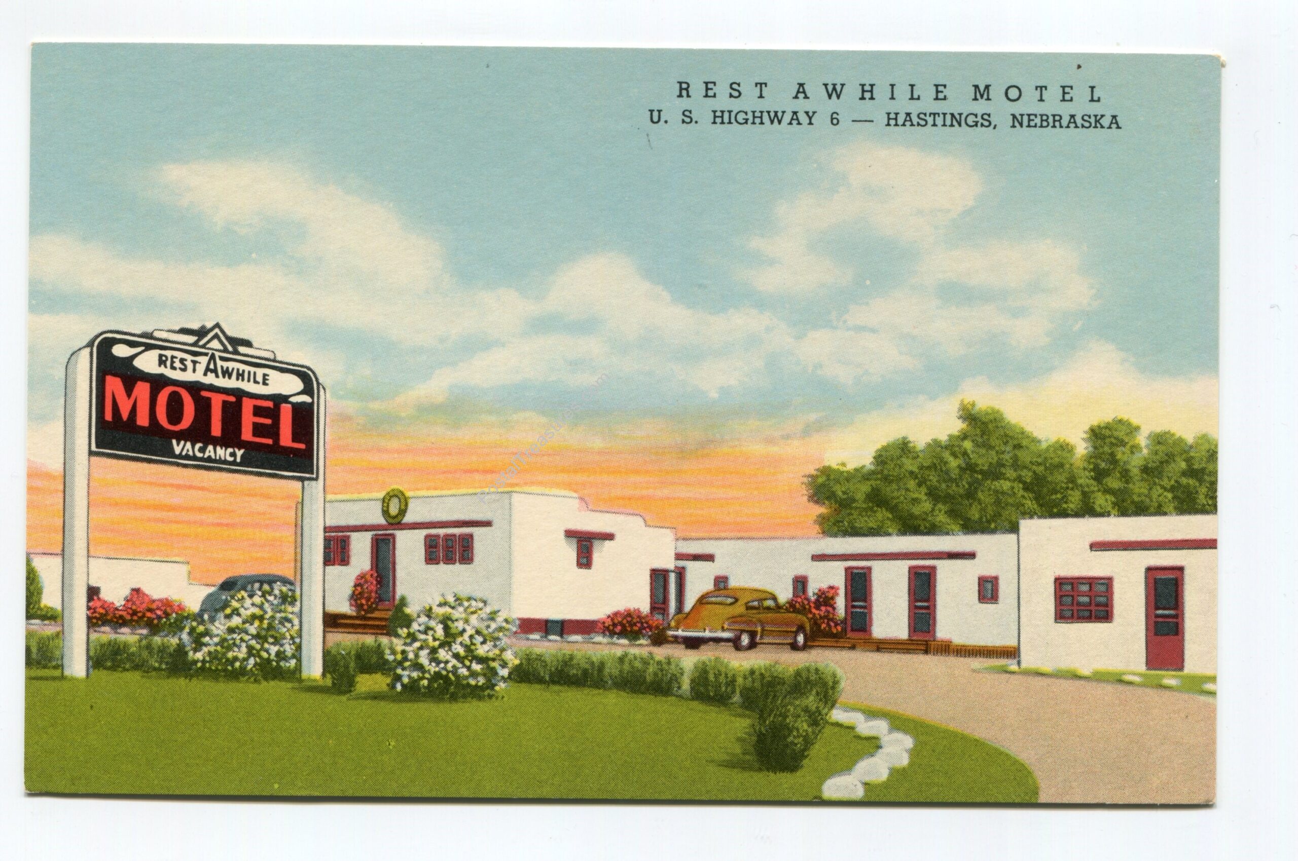 Rest Awhile Motel US Highway 6 Hastings Nebraska postcard
