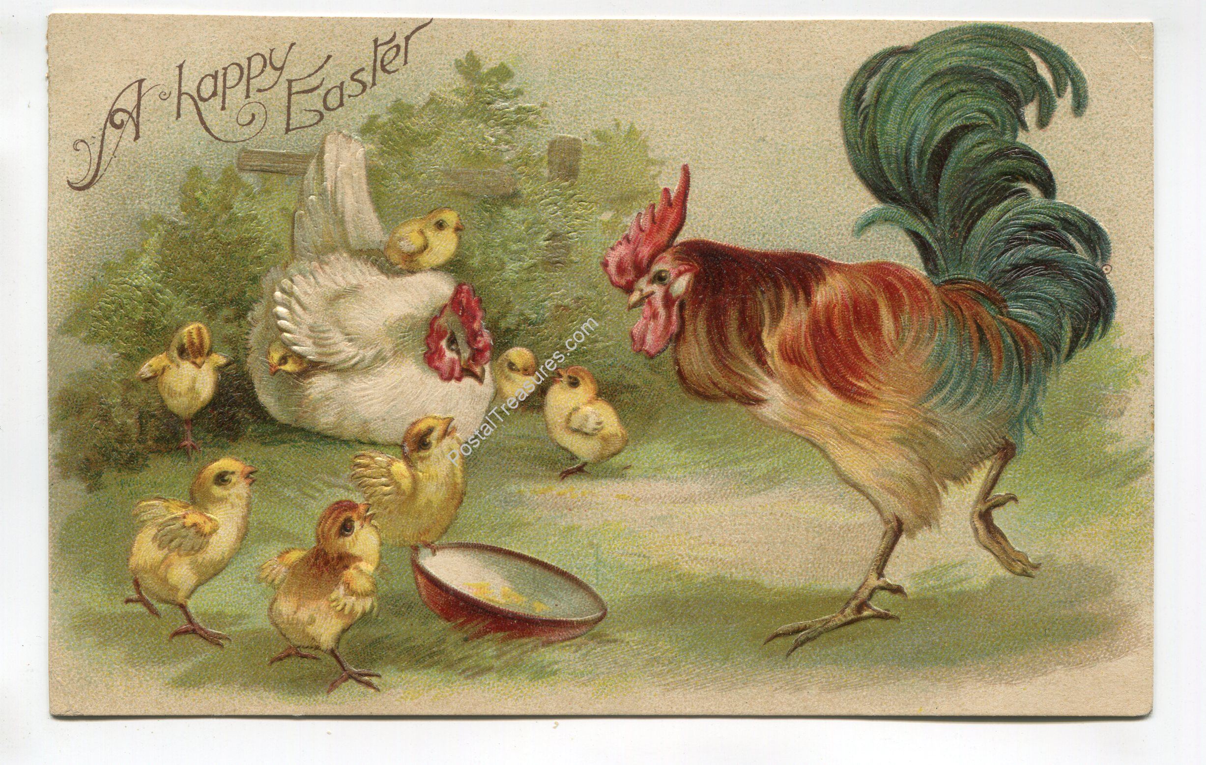 Rooster Hen and Chicks A happy Easter postcard